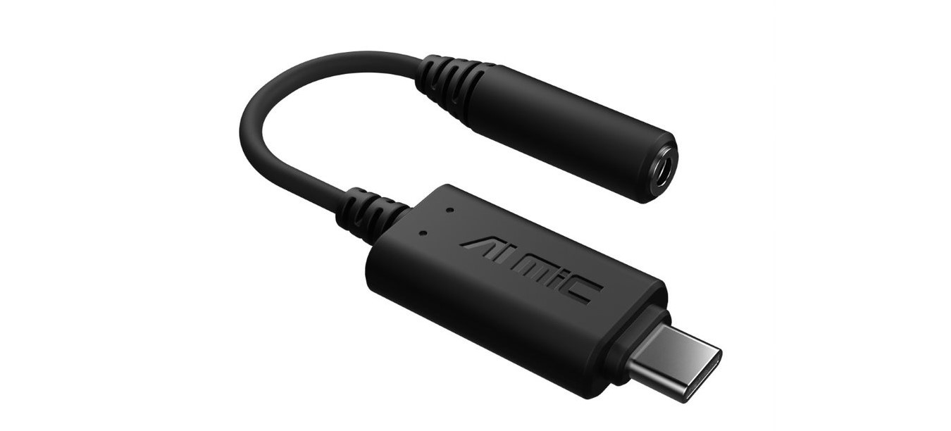 Adaptor de microfon ASUS AI Noise-Canceling Mic Adapter, conexiune USB-C la 3.5 mm, tehnologie de eliminare a zgomotelor din fundal, include adaptor USB-C la USB-A