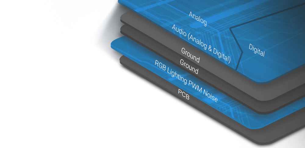 DAC-ul integrat de 96 kHz / 24 biti este dotat cu tehnologia exclusiva ASUS Hyper-Grounding , care previne interferentele electromagnetice (EMI) prin intermediul unui PCB cu multiple straturi si a unui design special al aranjamentului, ceea ce rezulta intr-un sunet pur, care este liber de orice zgomot provocat de EMI.