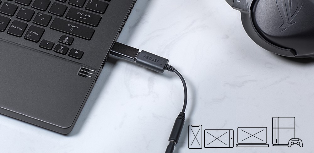 ASUS AI Noise-Canceling Mic Adapter are un conector USB-C® pentru a asigura compatibilitatea cu telefoanele mobile si consolele de jocuri. Pentru flexibilitate aditionala, include si un adaptor USB 2.0.