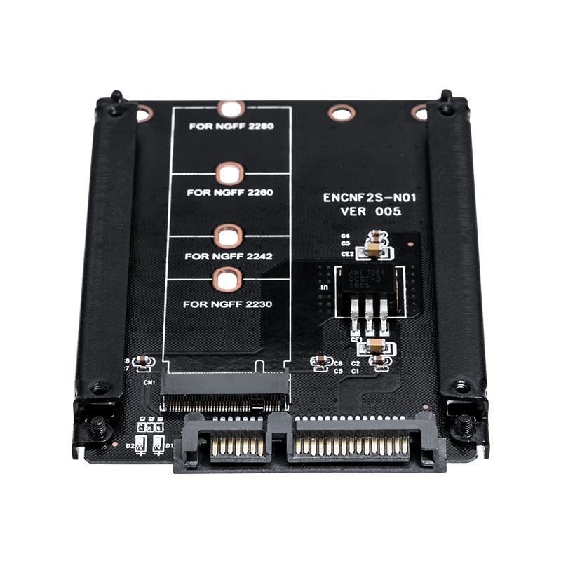 Adaptor Orico S22TM2 M.2 – SATA negru, 1x slot M.2, viteza de transmisie maxima: 6Gbps, capacitate maxima: 2TB, SSD-uri compatibile: 2230/2242/2260/2280, compatibilitate: IOS, Windows7/8/10, Linux, interfata: SATA 3.0, dimensiuni: 100x70x9.5mm, greutate: 49g