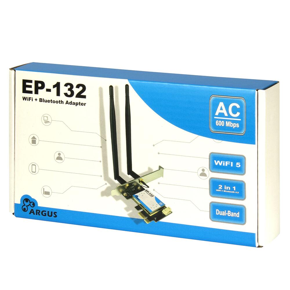 Adaptor PCI-express wireless si Bluetooth Argus EP-132 WiFi 5, Dualband USB Adapter 2.4GHz and 5GHz, standarde WLAN suportate: 802.11a/b/g/n/ac, viteza WLAN: pana la 600Mbps, Bluetooth 4.2, viteza pana la 2.3 Mbps, compatibilitate: Windows 7/8/8.1/10 / Linux / Mac