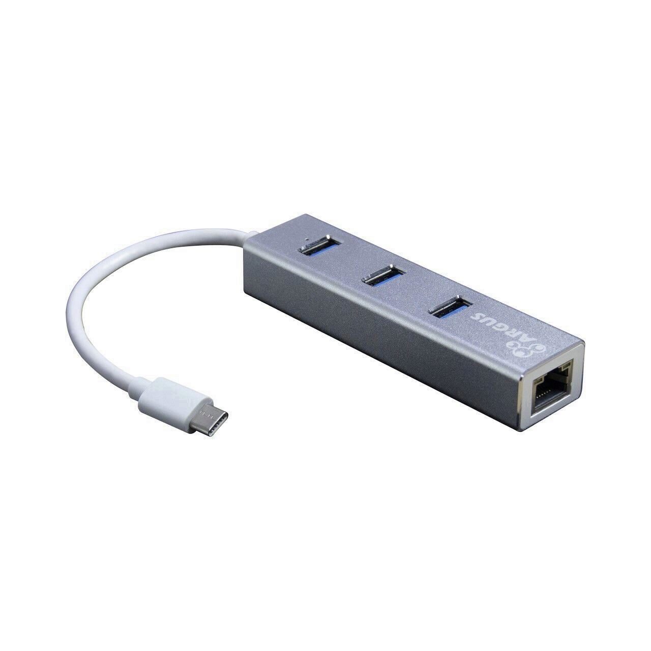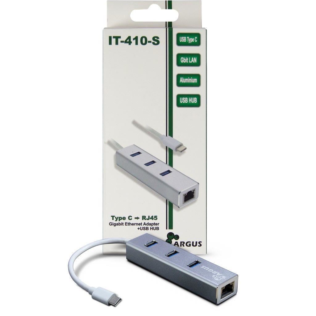 Adaptor retea Inter-Tech Argus IT-410 Gigabit cu HUB USB 3.0, 3 port-uri USB 3.0 si 1 port RJ45 Gigabit, constructie din aluminiu, plug and play, include cablu USB Type-C, suporta WakeOnLan, chipset placa de retea: Realtek RTL8153, chipset Hub USB: Genesys Logic GL3523, posibilitate hot swap, dimensiuni: 20 x 28 x 270mm