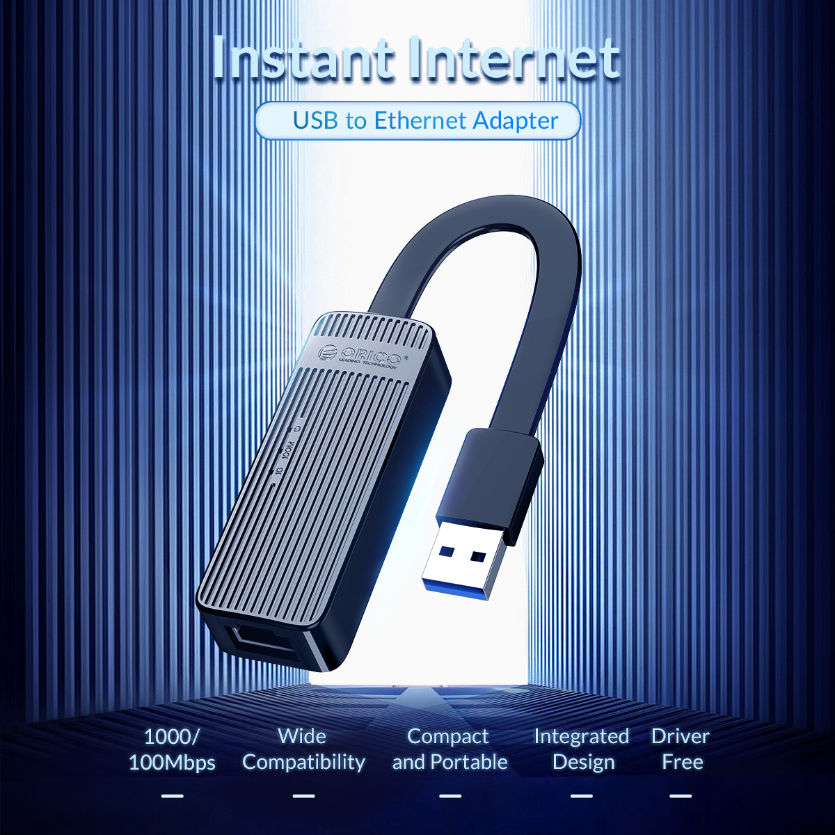 Adaptor retea Orico UTK-U2 negru, rata de transfer: 100/10Mbps, lungime cablu: 7.5cm, sisteme de operare compatibile: Windows / Mac OS, dimensiuni: 72x27x16mm