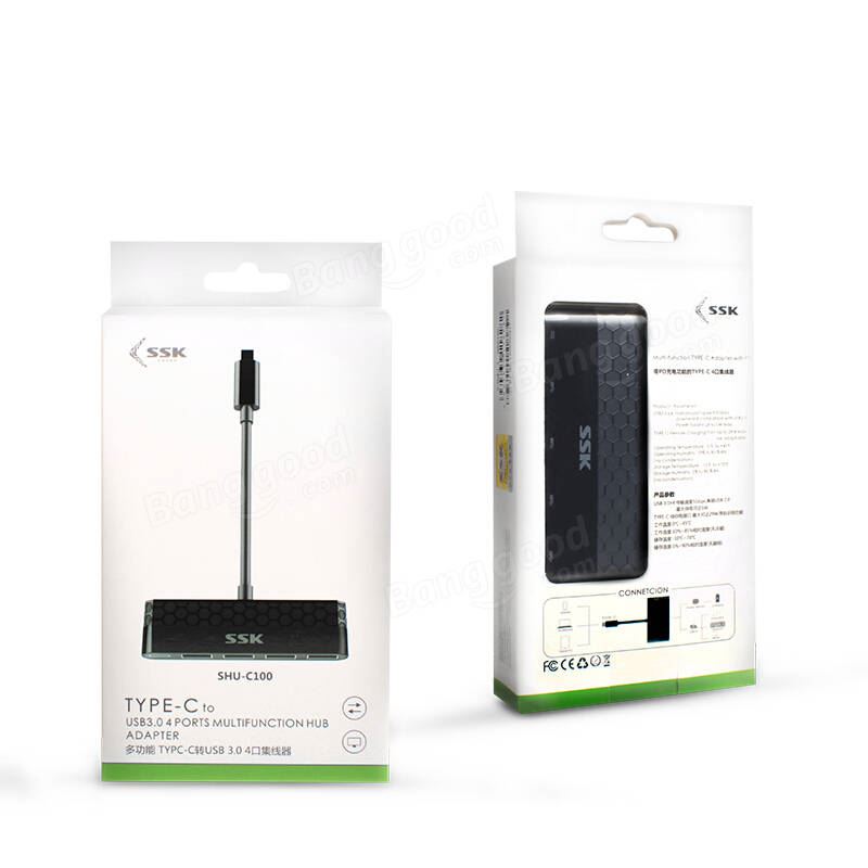 SSK SHU-C100 USB 3.0 Type-C to USB Type-C/4 Ports Hub Adapter, adaptor USB 3.0 Type-C -> 4x USB 3.0 Type-A/USB 3.0 Type-C, sisteme de operare suportate: Windows/Mac OS/Linux, dimensiuni: 100x12x162mm, greutate: 39g