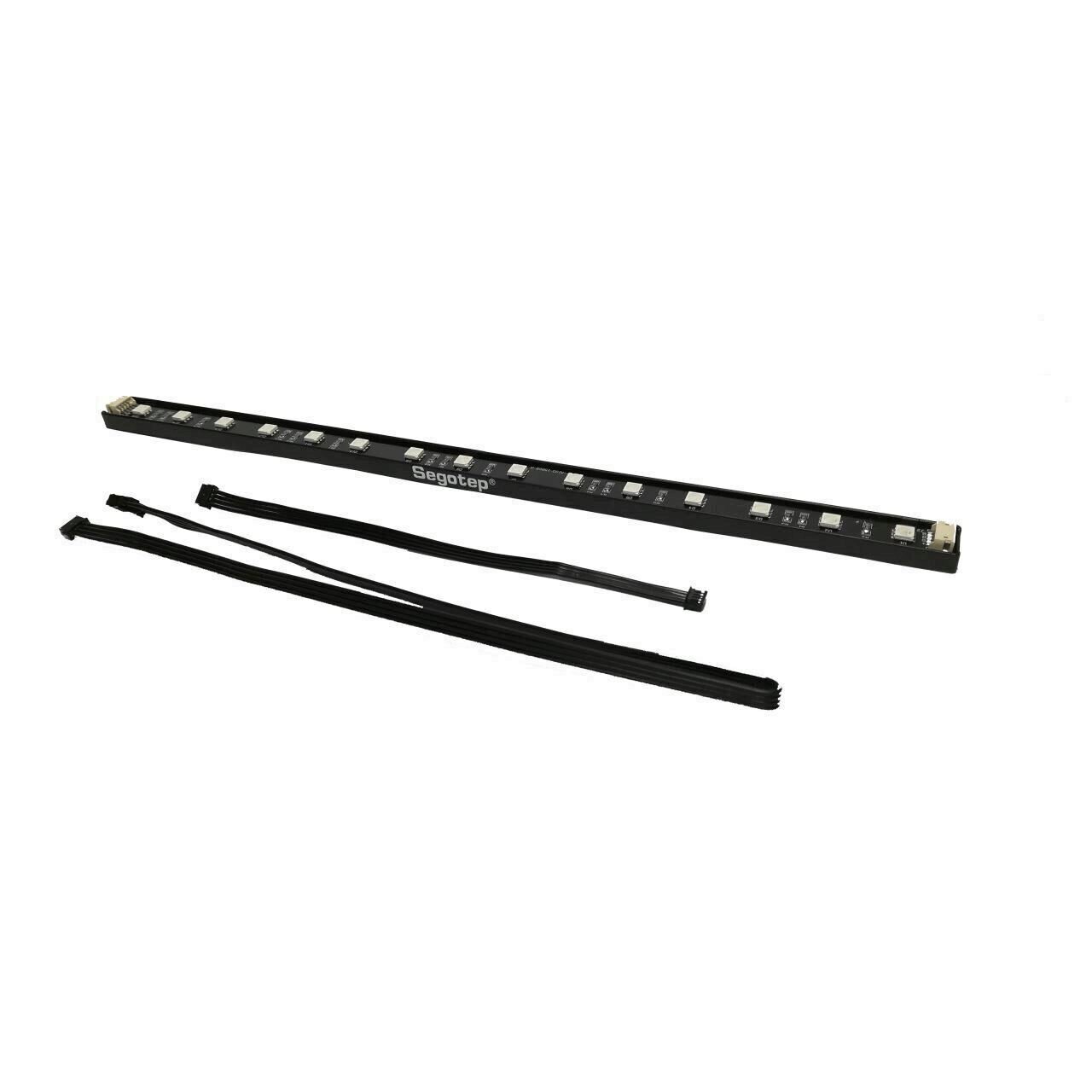 Segotep RGB LED Strip, fixare prin banda dublu adeziva sau magnet, lungime cablu extensie: 160mm, lungime cablu alimentare: 415mm, lungime banda LED: 300mm, dimensiuni banda LED: 300x15x7mm, numar LED-uri: 15buc, cabluri incluse: 1x alimentare, 1x extensie, compatibil Segotep RGB Hub