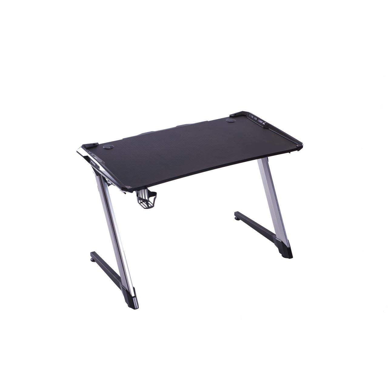 Birou gaming Inaza Carbon negru cu rosu iluminare RGB, suprafata cu textura de carbon, mousepad 900x250x3mm, suport de casti si pahar integrat, spatiu de depozitare pentru prelungitor si cabluri, iluminare RGB cu diferite moduri de iluminare, dimensiune suprafata birou: 111x60cm, inaltime blat: 75cm