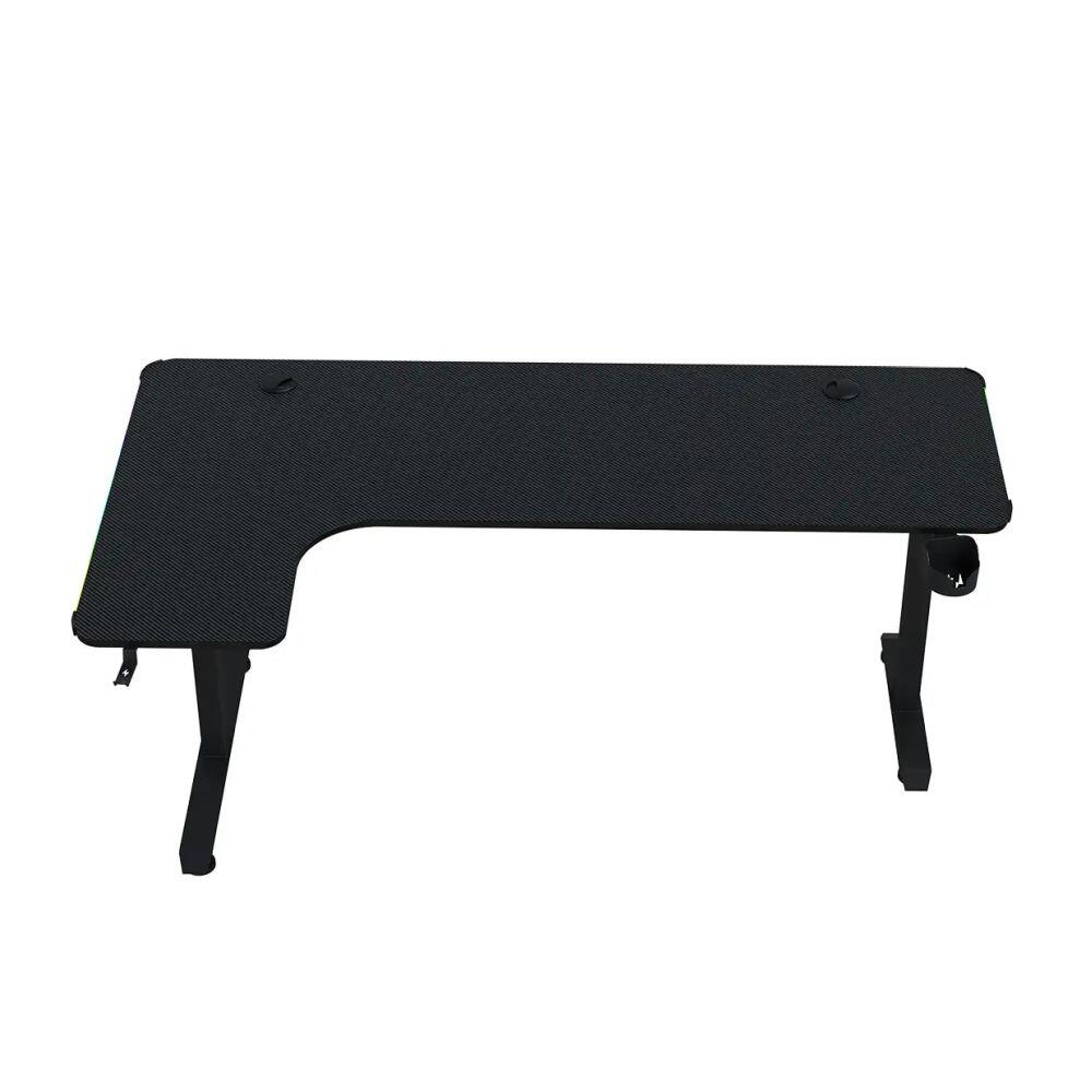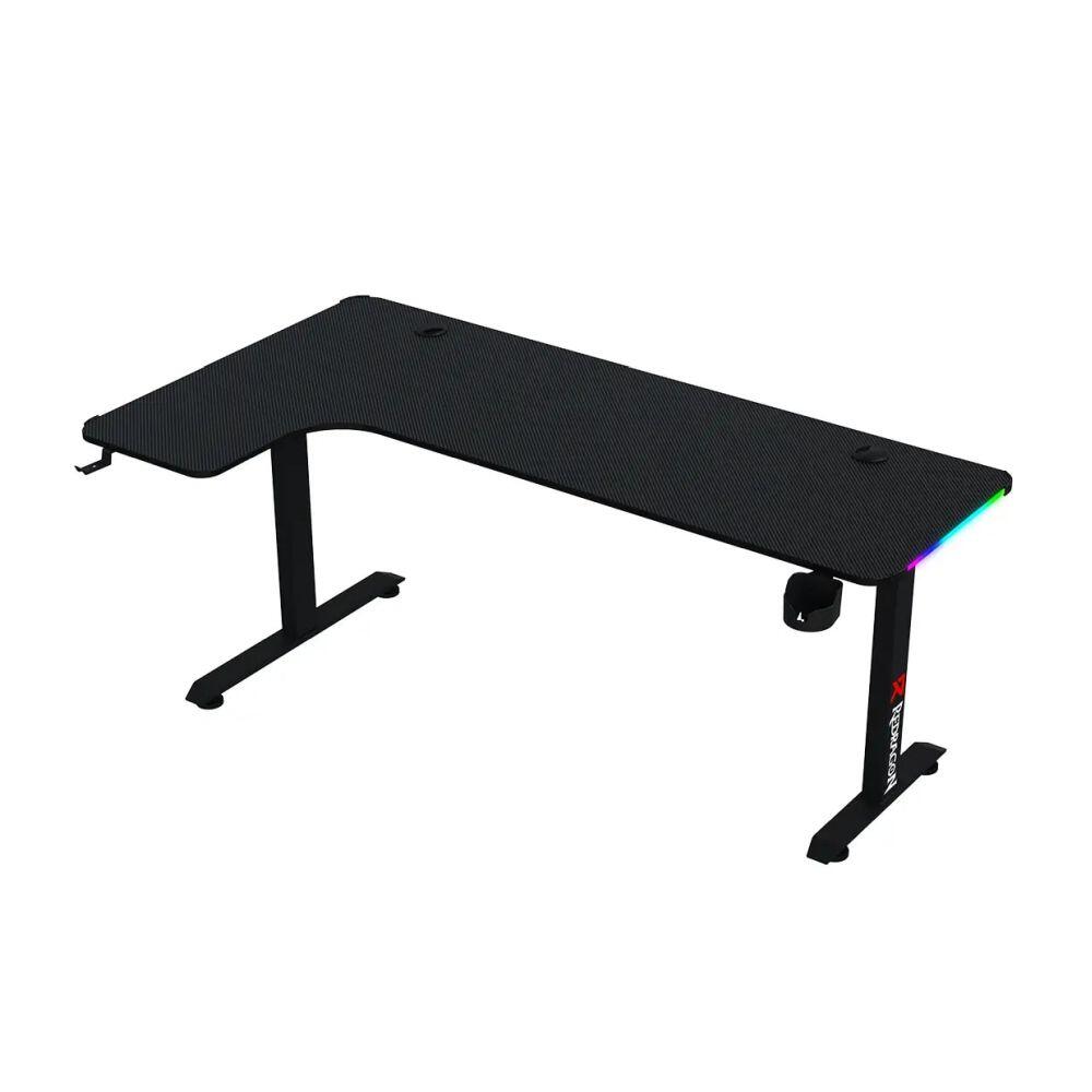 Birou gaming Redragon GD-3200-L negru iluminare RGB, structura din otel, biroul este iluminat RGB, forma blatului este de tip “L”, suprafata lucru tip carbon, dimensiune suprafata birou: 160x60x100cm, suport pahar, suport casti, greutate maxima admisa: 60 kg