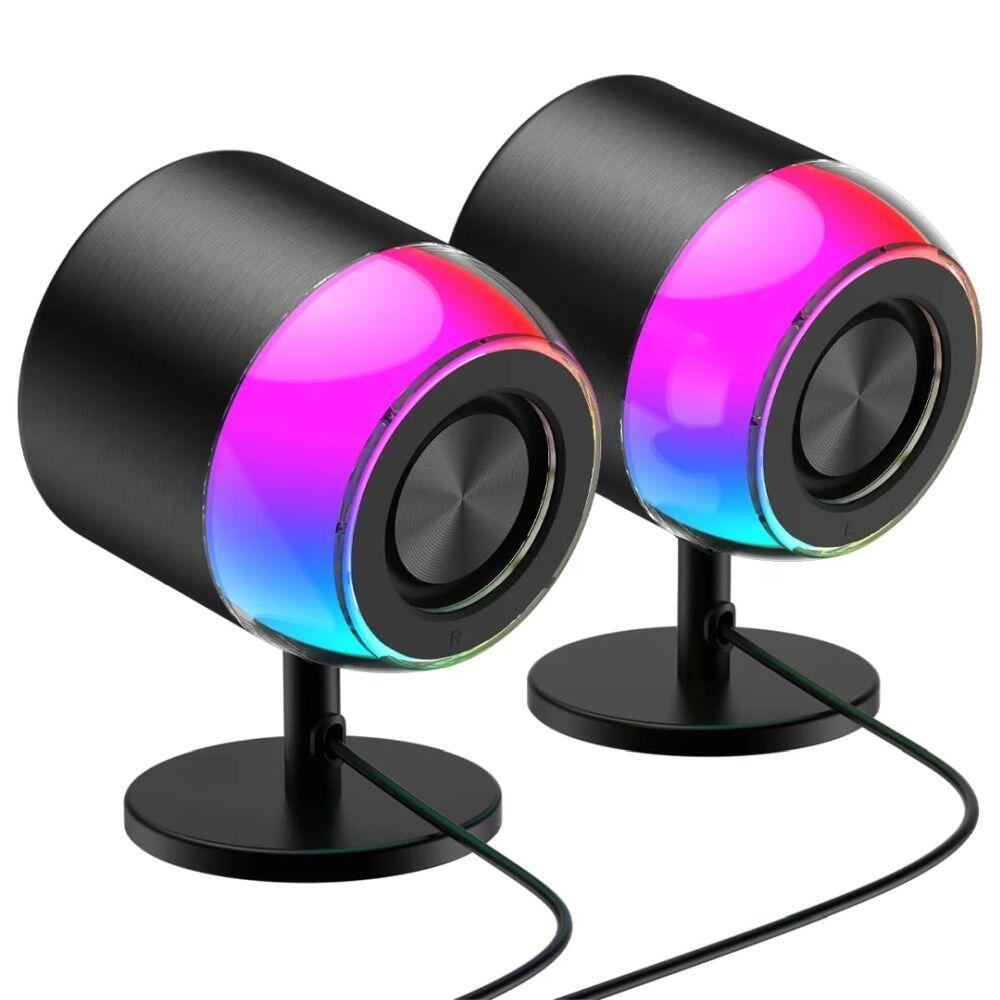 Boxe Bluetooth Redragon Ahri negre iluminare RGB, iluminare RGB a difuzoarelor, design tip Bullet cu picior, putere: 6W RMS (3W x 2), dimensiune difuzor: 2.25", frecventa: 100Hz~20KHz, ≥75db, telecomanda pe fir cu control volum/mod/iluminare, intrare AUX si iesire casti, conexiuni: ouput: 1x USB, input: 2x jack 3.5mm TRS, Bluetooth, dimensiuni: 138x101x90mm, greutate: 911g