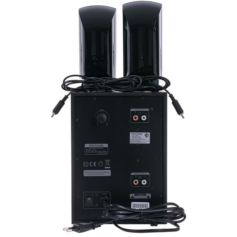 Microlab M-310 2.1 40W, putere: 12W x 2 + 16W RMS, difuzoare sateliti: 2x 2”, difuzor subwoofer: 5”, frecventa raspuns: 35Hz-20kHz, S/N: >80dB, separation: >45dB, harmonic distortion: <0.3 % (1W 1kHz), conexiuni: output: 2x RCA / input: 2x RCA, include cablu 3.5mm jack-2x RCA, dimensiuni subwoofer: 270x160x215mm, dimensiuni sateliti: 76x70x180mm, greutate: 3.7kg