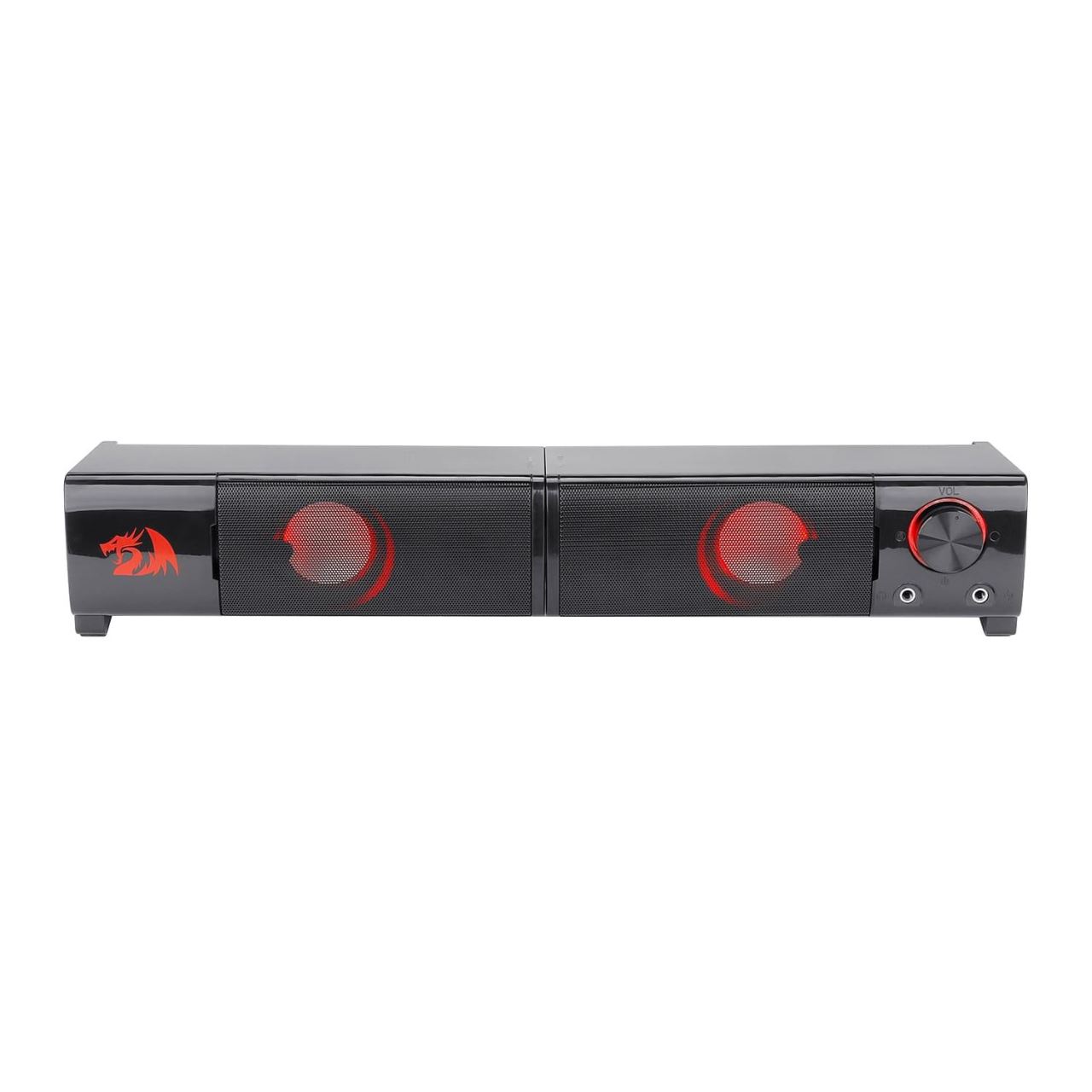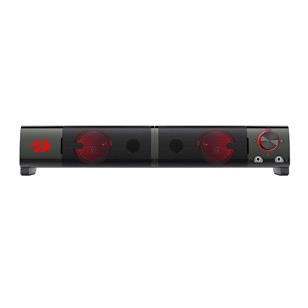 Boxe Redragon Orpheus negre, iluminare rosie a difuzoarelor, putere: 6W RMS (3W x 2), design transformabil (se pot folosi ca boxe stereo sau se pot conecta devenind un soundbar), conexiuni: ouput: 2x jack 3.5mm TRS, input: 2x jack 3.5mm TRS, 1x USB, dimensiuni: 190x220x100mm