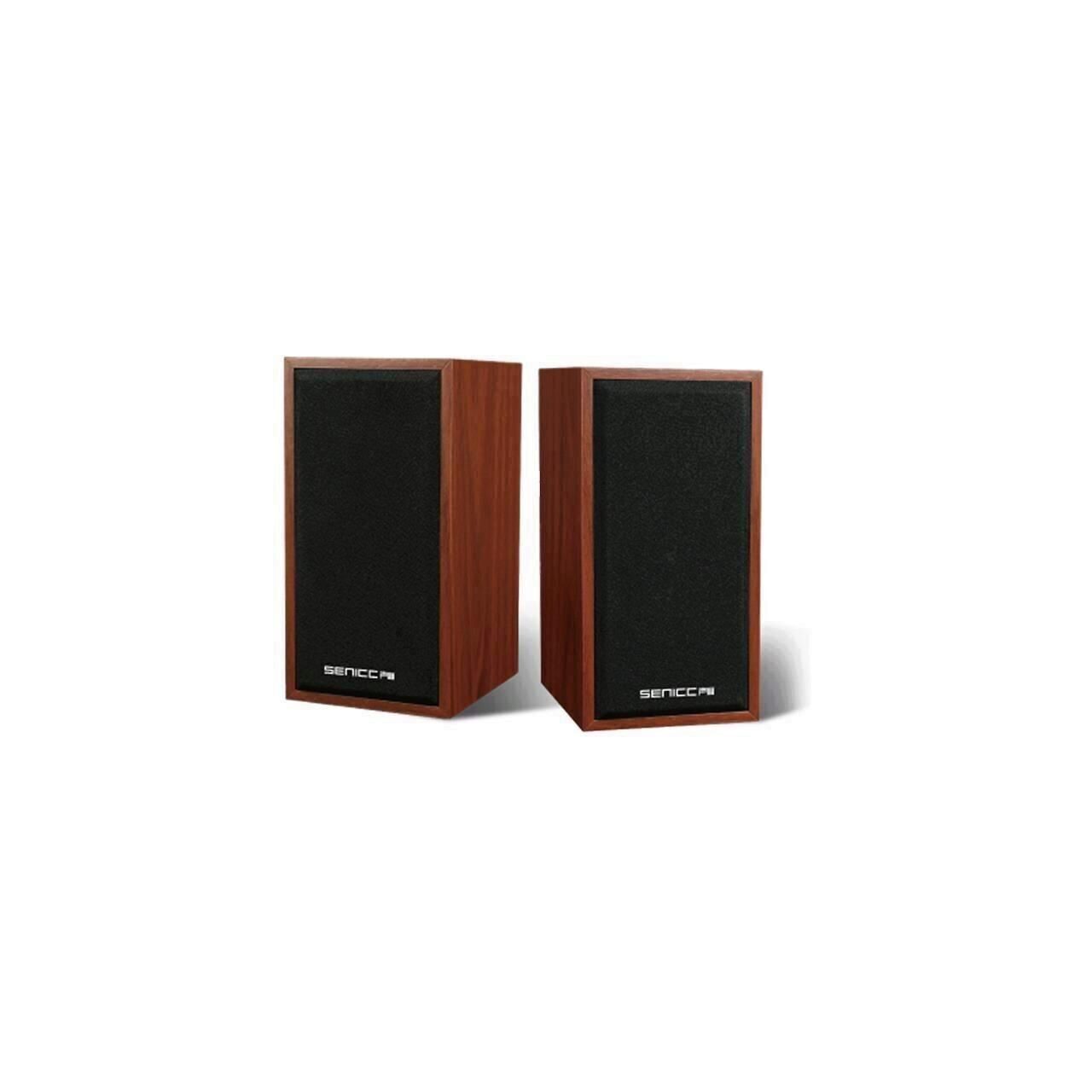Boxe portabile Senicc SN-465, putere: 3W x 2 RMS, difuzoare: 51mm (frecventa raspuns: 150Hz-15KHz, impedanta: 4Ω, signal to noise ratio: ≥60dB), alimentare prin mufa USB, lungime cablu: 100cm, conectori: 1x jack TRS 3.5mm si 1x USB, carcase construite din lemn, controlul volumului pe cablu, dimensiuni: 75x96x147mm, greutate: 725g