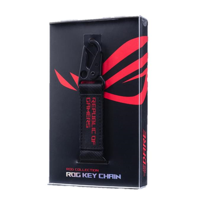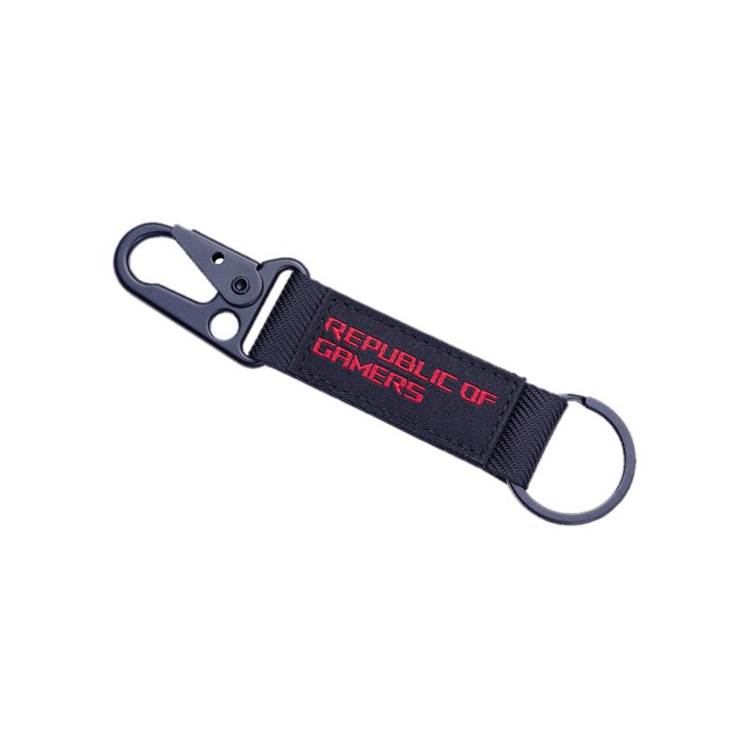 Breloc Asus OH103 ROG, negru, material: polyester si metal, carabina, logo ROG rosu, dimensiuni: 130x30x4mm, greutate: 19g