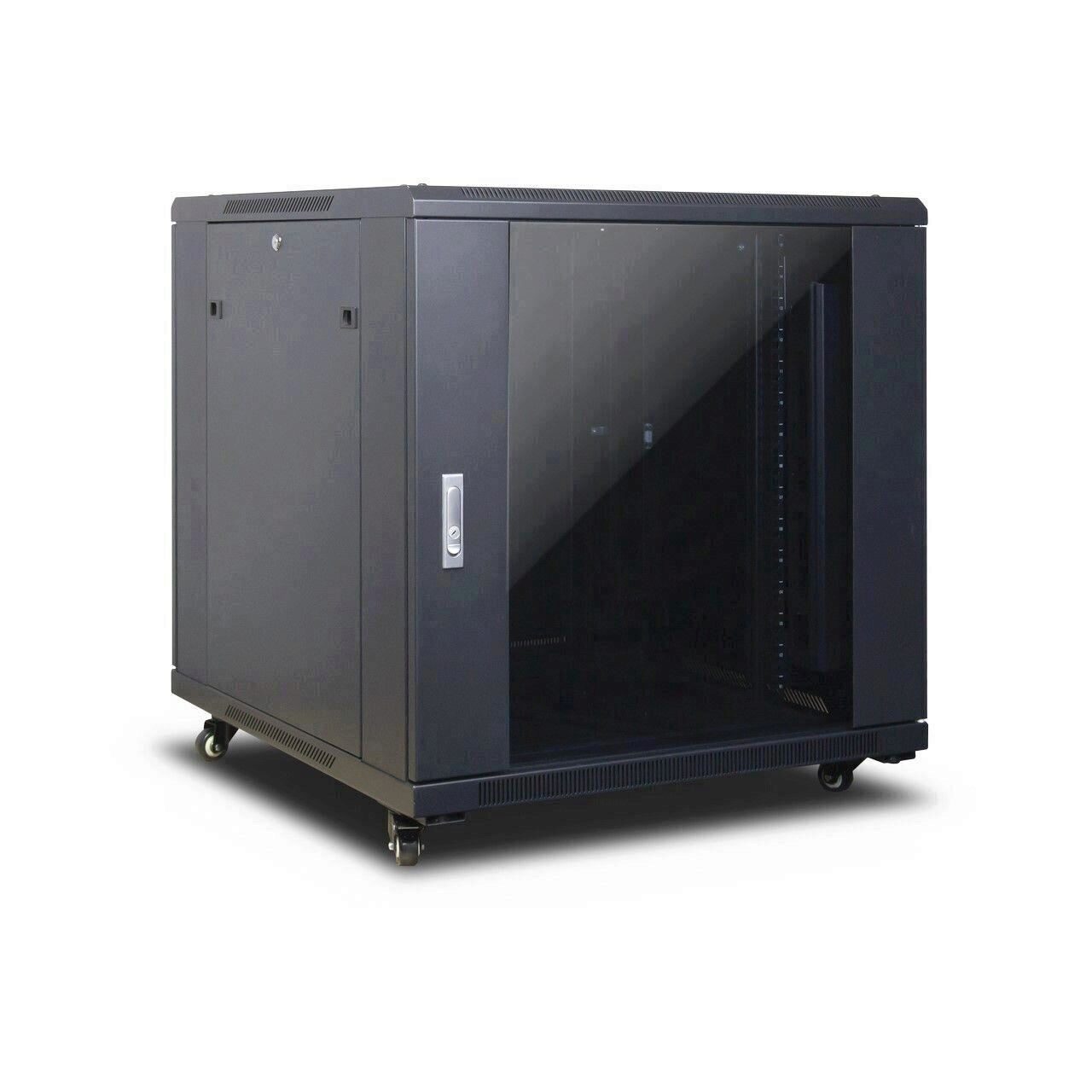 Cabinet server Inter-Tech SNB-8815 IPC 19" 15U 800mm de podea, material: otel laminat la rece cu o grosime de 1.25-1.5mm, usa din sticla securizata cu incuietoare si deschidere de 180°, balamalele usii din spate se pot monta pe ambele parti si asigura o deschidere la 180°, panouri laterale demontabile si blocabile, posibilitate montare panou ventilatie SWSN-1000 (se achizitioneaza separat), intrare/iesire de cabluri pe capac si baza, 3 trepte de adancime pe lateral, sinele se pot regla pe adancime, capacitate unitati 15U, adancime 800mm, latime 800mm, greutate maxima echipamente 400Kg, certificare IP: IP20, culoare: RAL 9005 (negru), continut pachet (ambalat in 4 cutii): SNB-8815 / 4 roti (din care 2 cu blocaj) / picioare de nivelare / set suruburi / 20x suruburi si piulite / 2 cabluri de impamantare pentru usi / 2 canale de cablu cat inaltimea cabinetului, dimensiuni (HxWxD): 800 x 800 x 800mm (fara role sau picioare de nivelare), greutate: 59.53Kg