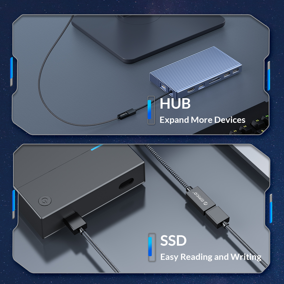 Cablu extensie Orico ACF31-10 USB3.1 GEN2 Type-A Male – Type-C Female 1m negru, conectori: USB Type-A Male si USB Type-C Female, conectori auriti, rata de transfer de pana la 10Gbps, maxim 3A, imbracat in textil, lungime cablu: 100cm
