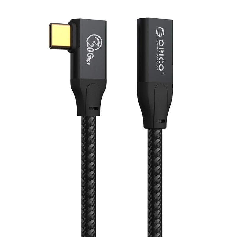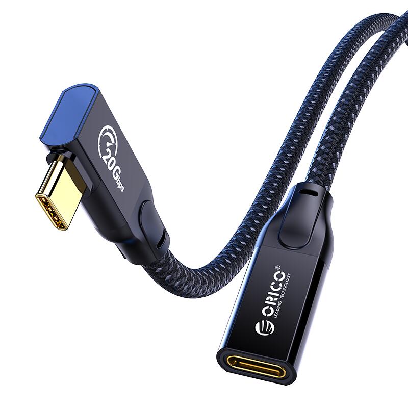 Cablu prelungitor Orico CLY32 100W USB Type-C male - USB Type-C female 1m negru, USB 3.2 Gen2.2, 20Gbps, video: 4K@60Hz, putere maxima: 100W, 20Vx5A, conectori: 1x USB Type-C male 90°, 1x USB Type-C female, lungime cablu: 100cm