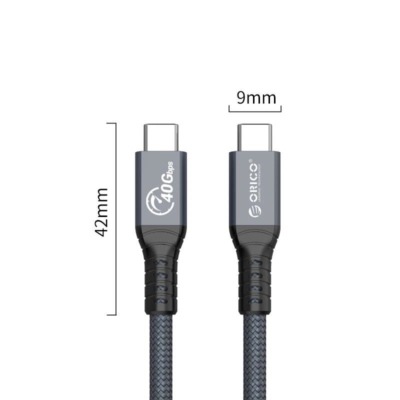 Cablu USB Orico TBZ4 Thunderbolt 4 2m gri, 40Gbps, single screen: 8K@60Hz, dual screen: 4K@60Hz, putere maxima transmisibila: 100W, 20V, 5A, conectori: USB Type-C, lungime cablu: 200cm