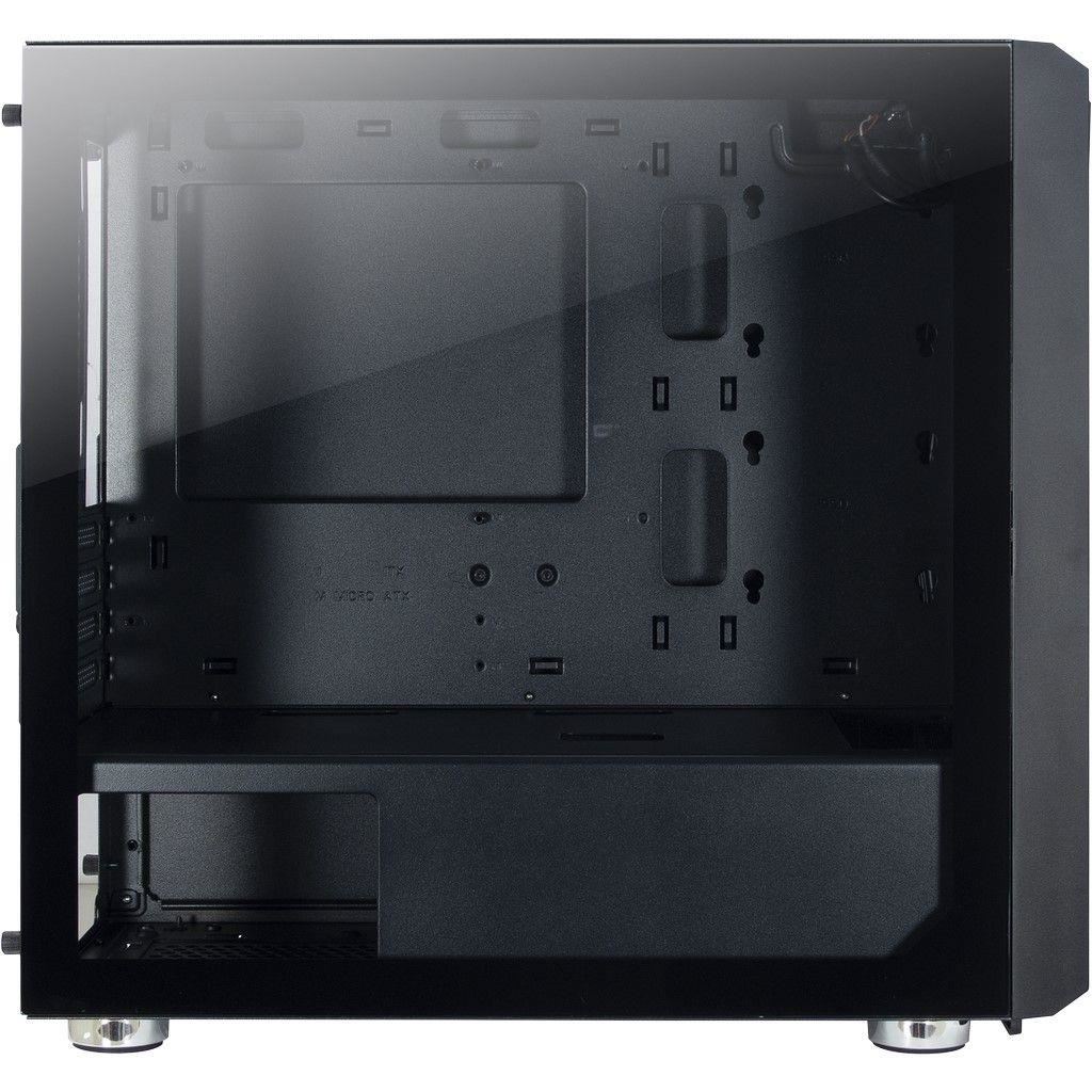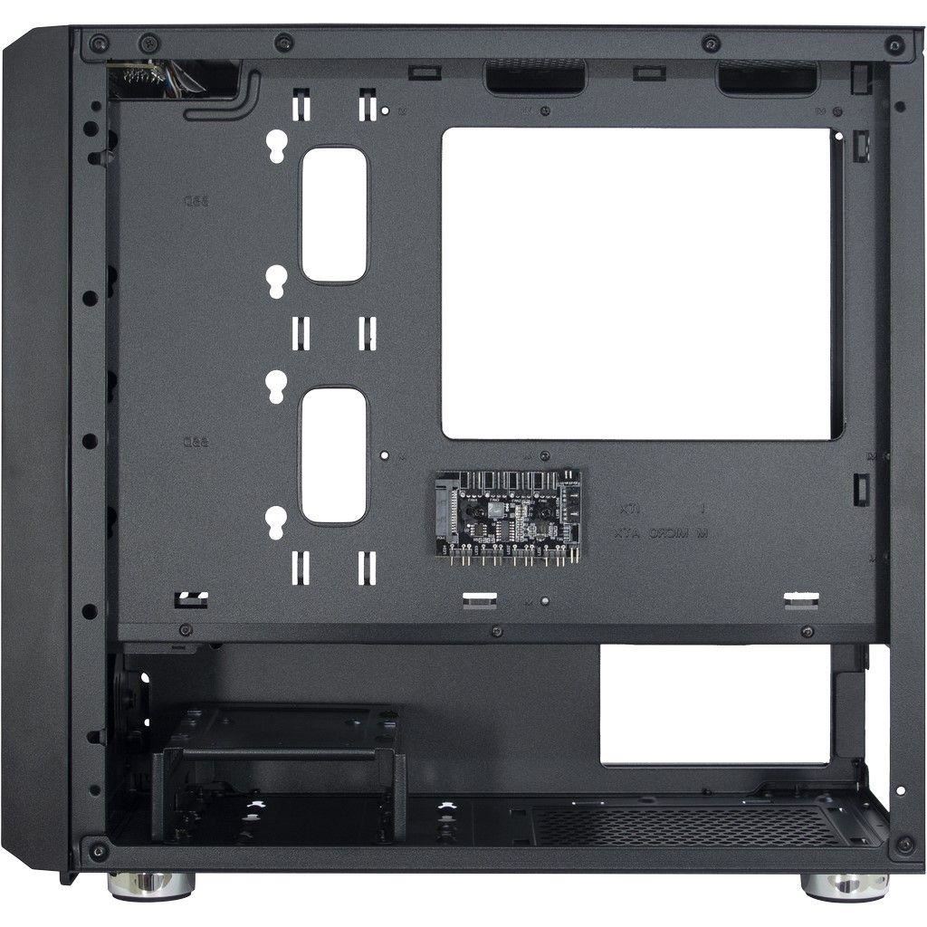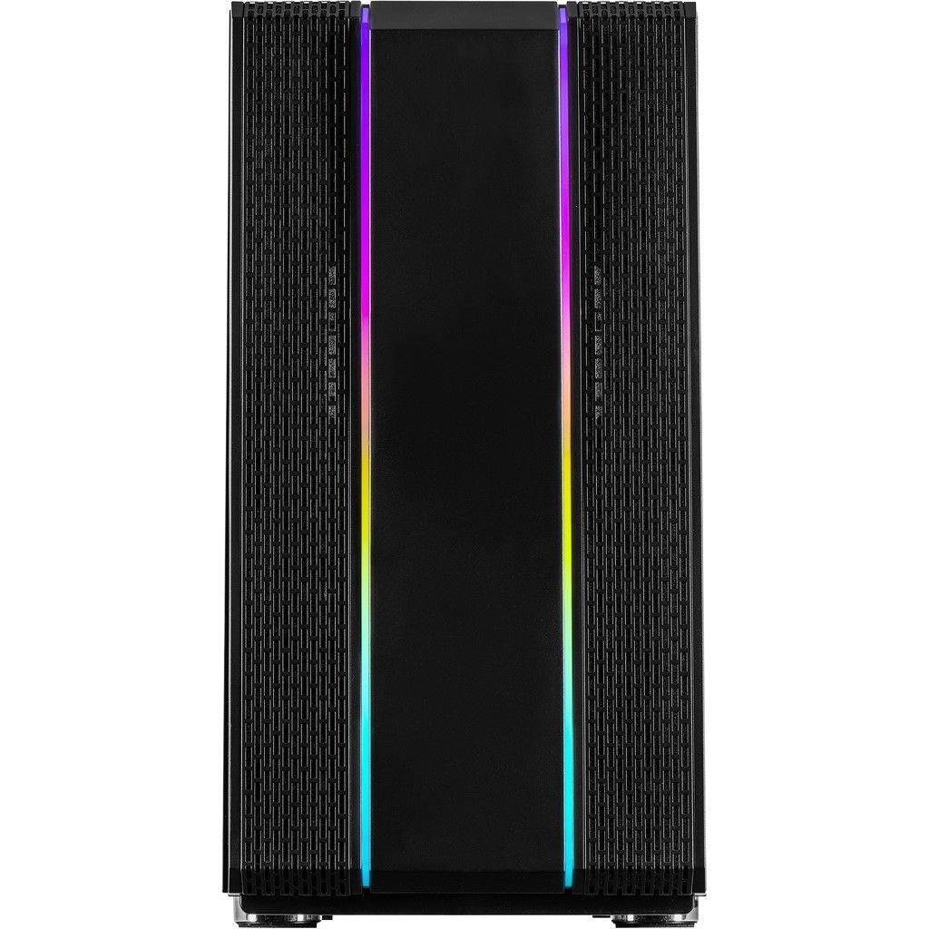 Cacasa Inter-Tech X-3601 Impulse neagra, SPCC Steel ATX Mid Tower, fara sursa (tip ATX, montata jos), interior vopsit negru, 1x3.5” (intern), 2x2.5” (intern), design tool-less, fata – 2x 120/140mm fan (optional), spate – 1x 120mm fan (optional), tavan – 2x 120/140mm(optional), 1x USB 3.0, 2x USB 2.0, HD Audio, microATX / Mini-ITX, inlcude filtru de praf, design premium cu panou fronta iluminat RGB si panou lateral din sticla securizata, sloturi expansiune: x4, inaltime maxima cooler procesor: 155mm, lungime maxima placa video: 325mm, dimensiuni (h/w/d): 395x210x440mm, greutate: 5.50kg