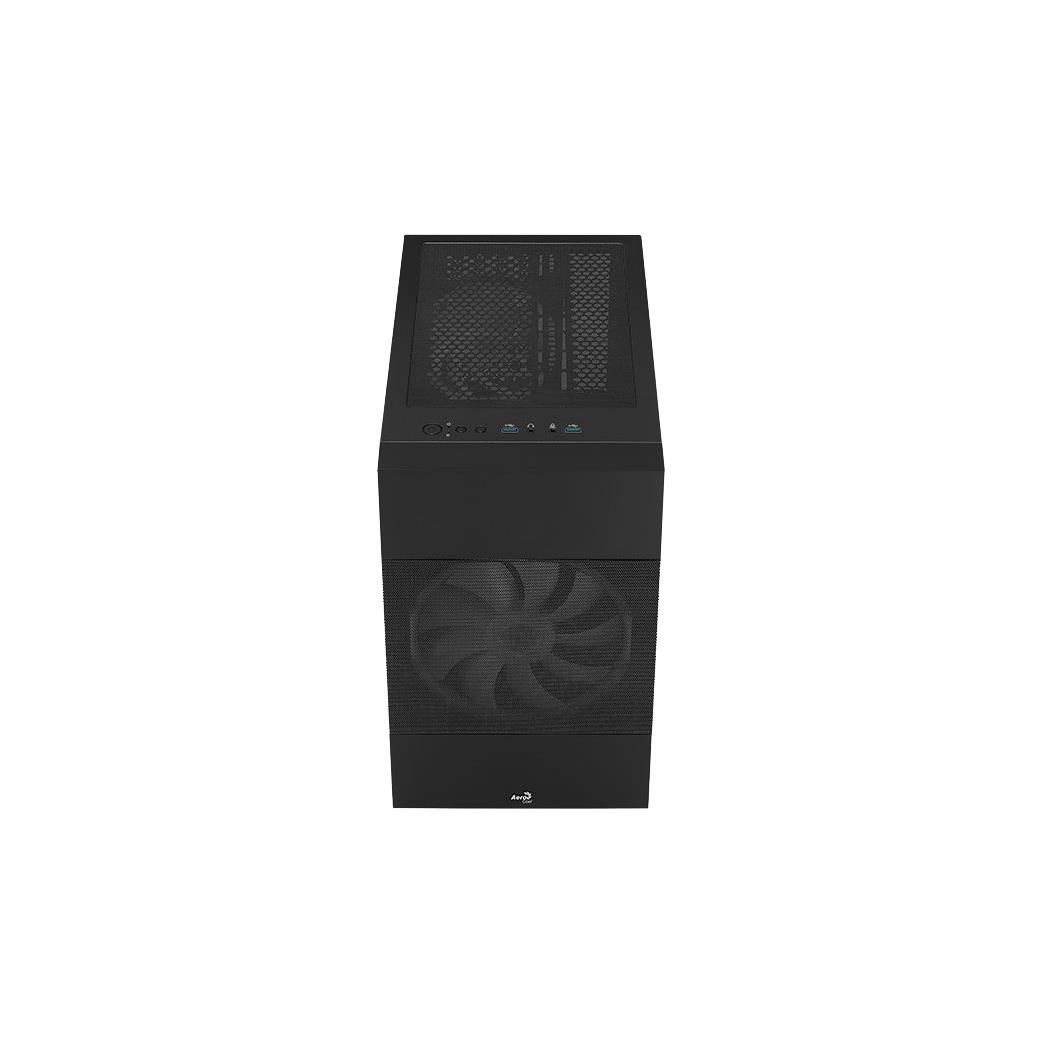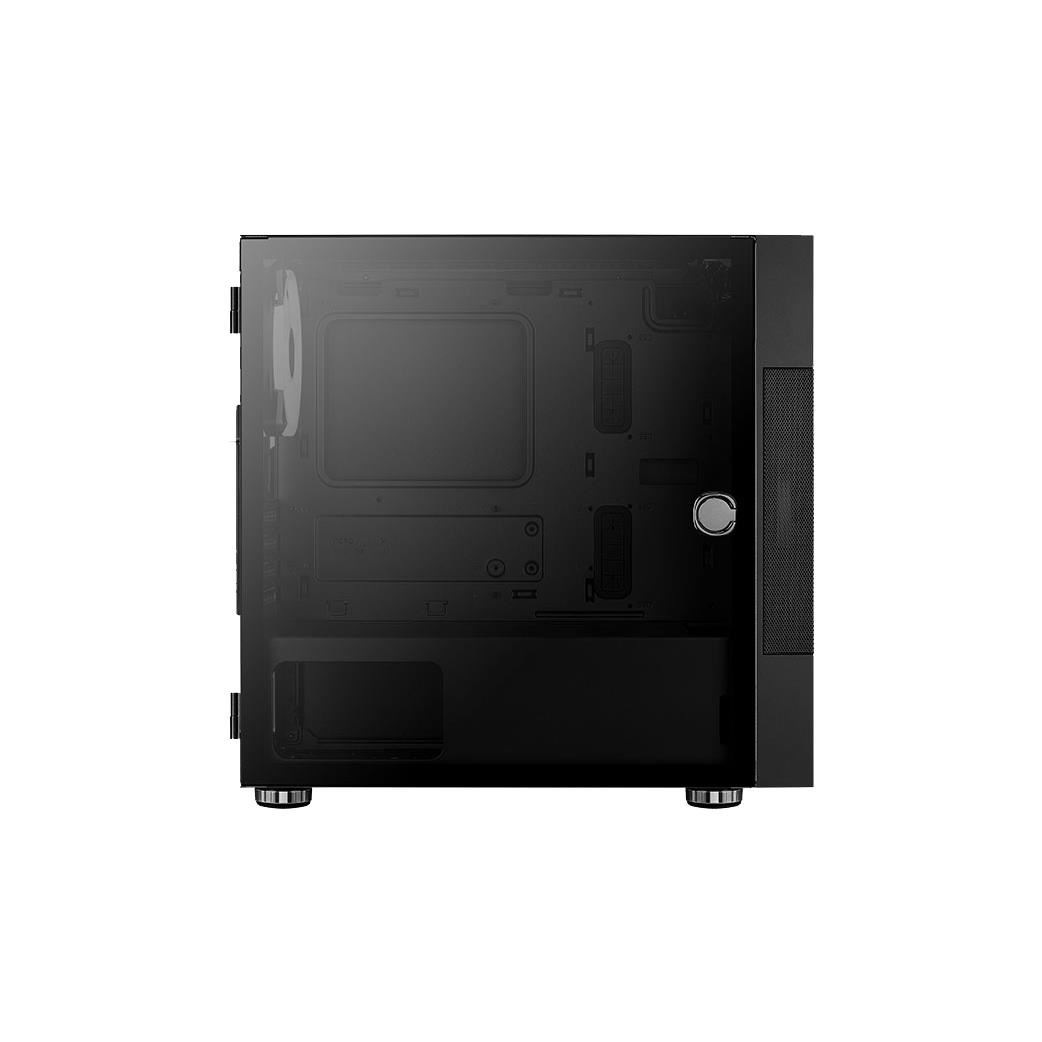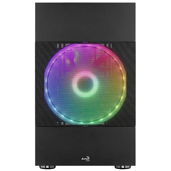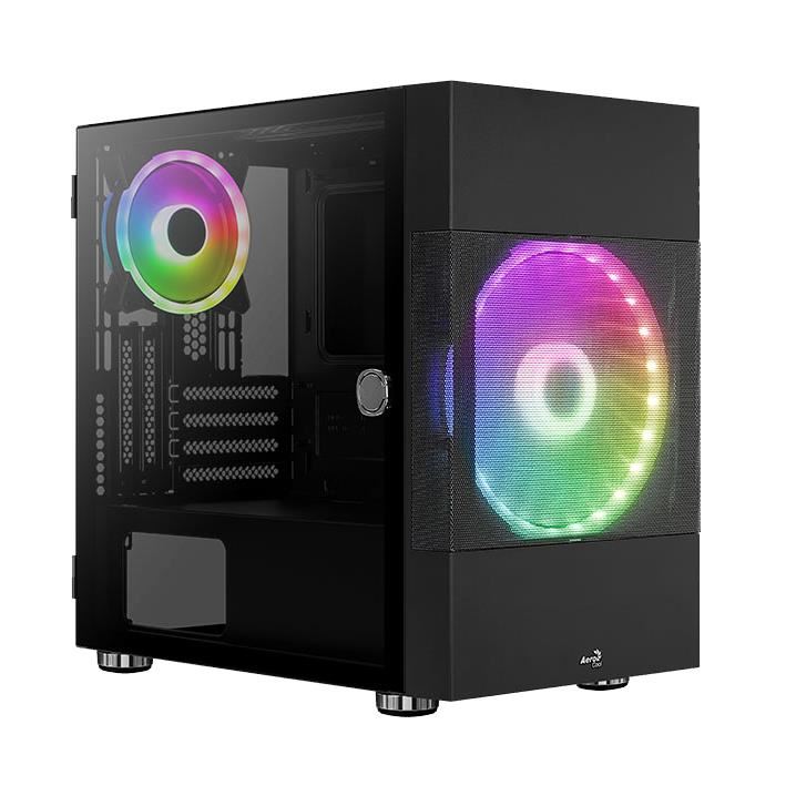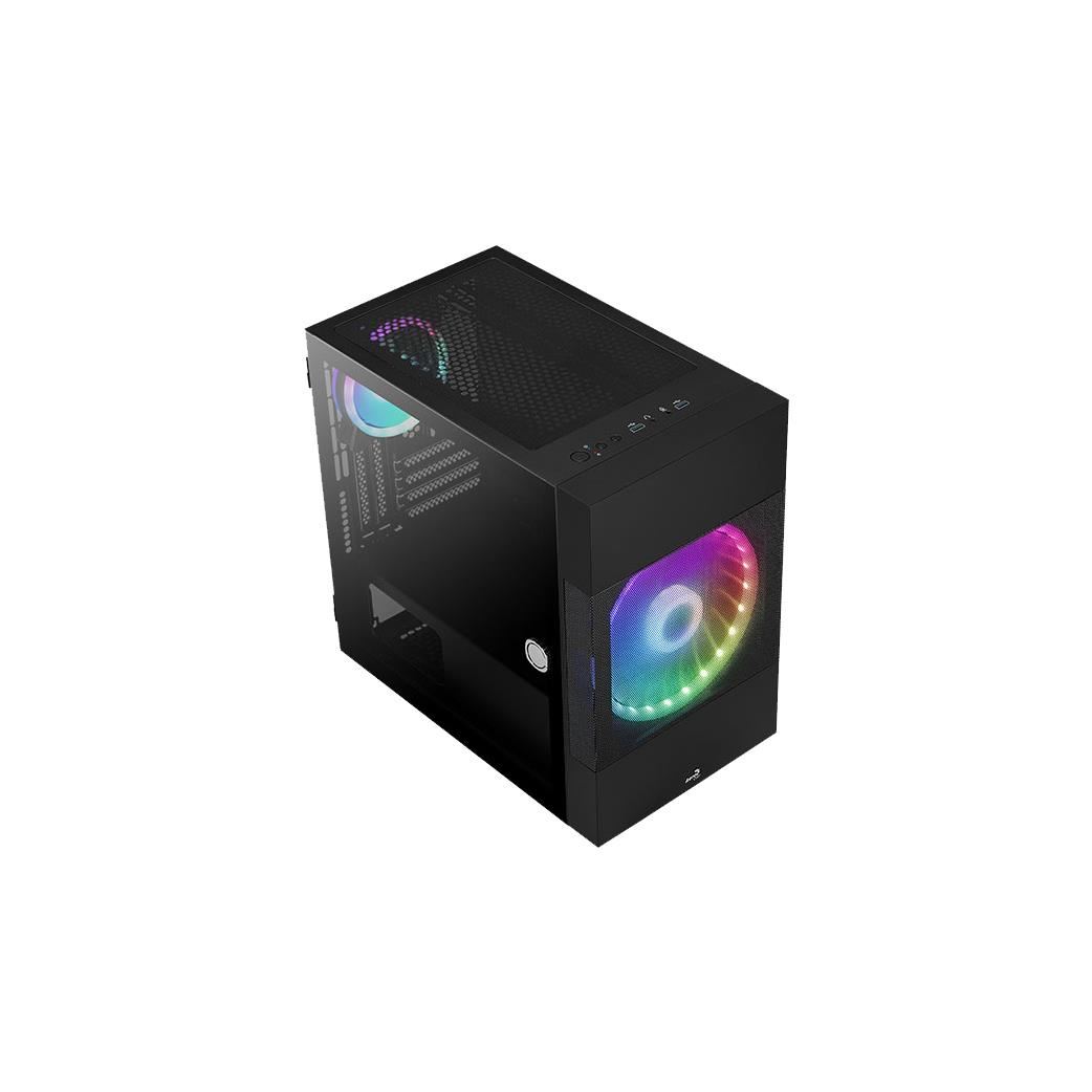 Carcasa Aerocool Atomic neagra, SPCC ABS Steel ATX Mini Tower, fara sursa (tip ATX, montata jos), interior vopsit negru, 2x3.5” (1 x 3.5” si 1 x 3.5”/2.5″ intern), 4x2.5” (3 x 2.5” si 1 x 2.5”/3.5” intern), fata – 1x 200mm LED aRGB fans (inclus) / 2x 120/140mm fans (optional), spate – 1x 120mm LED aRGB fan (inclus), tavan – 2x 120mm fans (optional), design premium cu panou lateral din sticla securizata, 2x USB 3.0, HD Audio, microATX / Mini-ITX, sloturi expansiune: x4+2, inaltime maxima cooler procesor: 184mm cu placa video montata vertical sau 104mm cu placa video montata pe placa de baza, lungime maxima placa video: pana la 347mm fara radiator montat, suport radiatoare water cooling: fata – 1x 120/240/280mm, tavan – 1x 240mm, spate – 1x 120mm, dimensiuni (HxWxD): 390x230x403.5mm