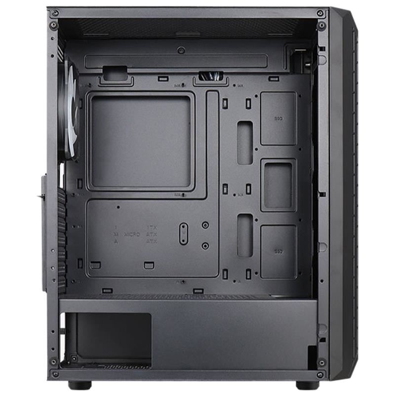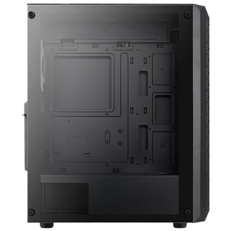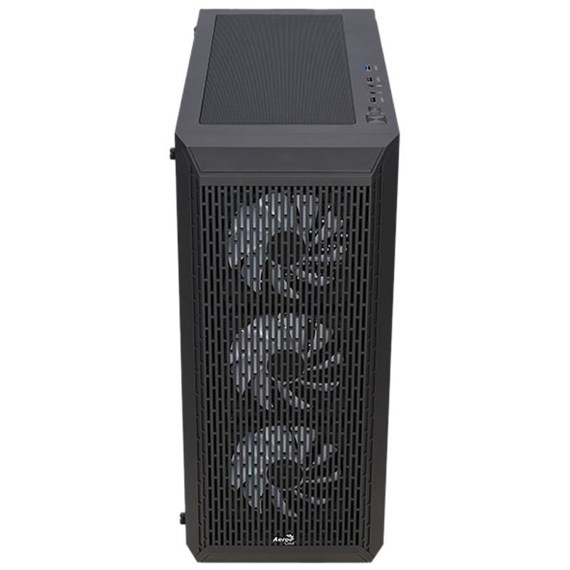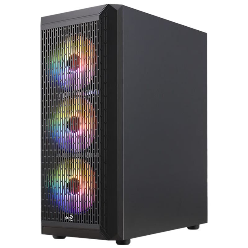 Carcasa Aerocool Beam V2 RGB neagra, SPCC ABS Steel ATX Mid Tower, fara sursa (tip ATX, montata jos), interior vopsit negru, 2x3.5” (2 x 3.5” sau 2 x 2.5″ intern), 4x2.5” (2 x 2.5” si 2 din locasurile de 3.5”), fata – 3x 120mm LED fRGB fans (inclus), spate – 1x 120mm LED fRGB fan (inclus), tavan – 2x 120/140mm fans (optional), podea- 2x 120mm fan (optional), design premium cu panou lateral din sticla securizata si panou frontal din ABS perforat, spatiu cable management: 23.48mm, 1x USB 3.0, 2 x USB 2,0, HD Audio, ATX / microATX / Mini-ITX, sloturi expansiune: x7+2, inaltime maxima cooler procesor: 160mm, lungime maxima placa video: pana la 343mm fara ventilator montat, suport radiatoare water cooling: fata – 1x 120/240/280/360mm, tavan – 1x 120/240/280mm, spate – 1x 120mm, dimensiuni (HxWxD): 481.5x210x404mm