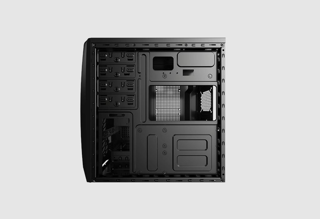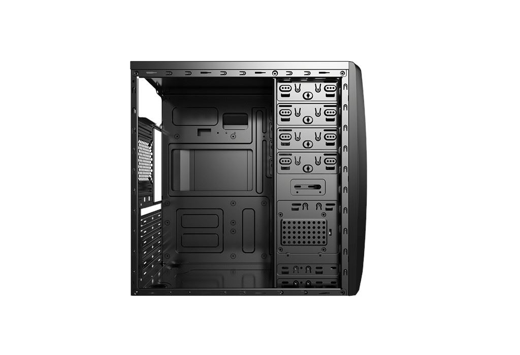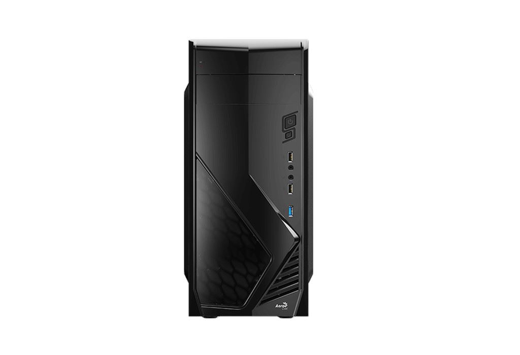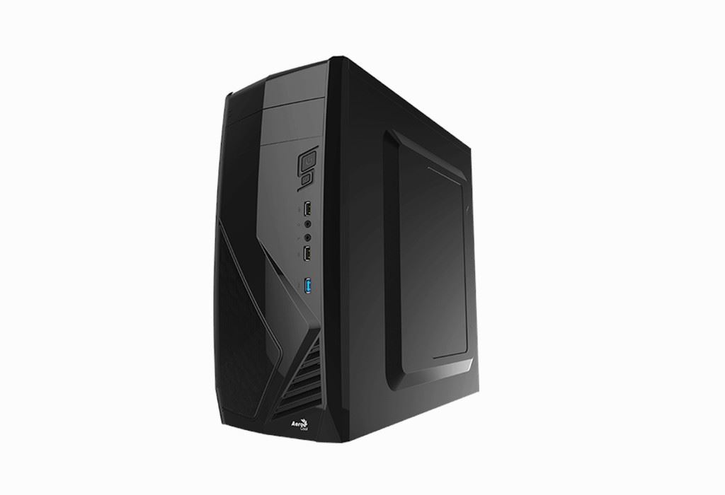 Carcasa Aerocool CS-1102 neagra, SPCC Steel ATX Mid Tower, fara sursa (tip ATX, montata jos), interior vopsit negru, 1x5.25” (extern), 3x3.5” (intern), 1x2.5” (intern), fata – 1x 120mm fans (optional), spate – 1x 80mm fan (inclus) / 1x 92mm fan (optional), 1x USB 3.0, 1x USB 2.0, HD Audio, ATX / microATX / Mini-ITX, sloturi expansiune: x7, inaltime maxima cooler procesor: 150mm, lungime maxima placa video: 350mm (cu ventilator frontal montat) / 375mm (fara ventilator frontal montat), dimensiuni (HxWxD): 410x195x423mm, greutate: 2.7kg