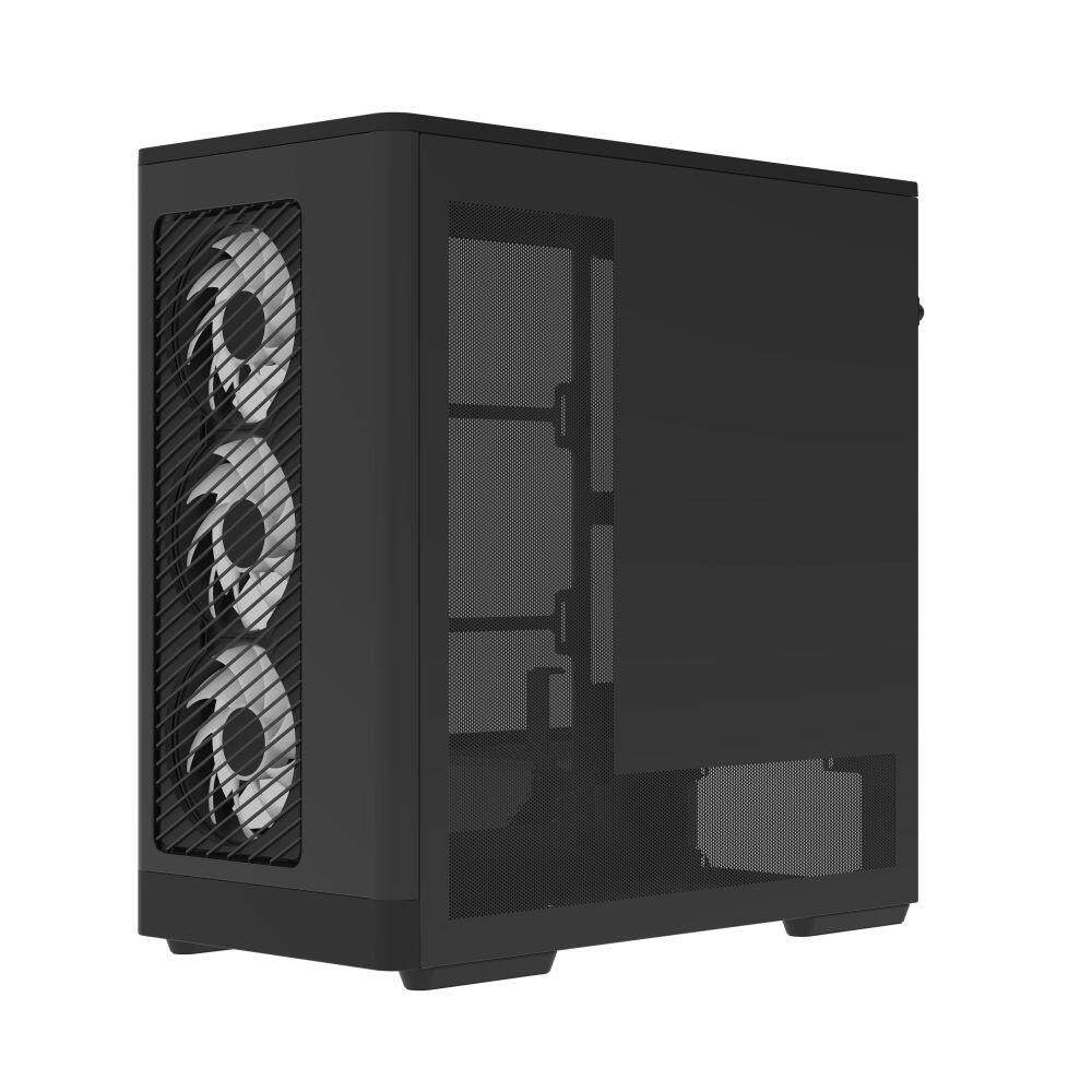 Carcasa Aerocool D520A V1 neagra, SPCC Steel ATX + Tempered Glass Mid Tower, fara sursa (tip ATX, montata jos), interior vopsit negru, 1x 3.5” (intern), 3x 2.5” (intern), lateral – 3x 120mm fans (optional), fata – 3x 120mm ARGB LED , spate – 1x 120mm ARGB LED fan (inclus), tavan – 3x 120mm / 2x 140mm fan (optional), podea – 2x 120mm fans (optional), 1x USB Type-C, 1x USB3.2 Gen 2×2 Type-C, 2x USB3.2 Gen 1 Type-A, HD Audio, ATX / microATX / mini-ITX (suporta placi de baza cu reverse connector), sloturi expansiune: x7, inaltime maxima cooler procesor: 180mm, lungime maxima placa video: 400mm (fara radiator montat pe lateral), suport radiator water cooling: tavan – 1x 120/140/240/280/360mm, adancime compartiment cabluri: 30mm, dimensiuni (WxHxD): 235x480x460mm