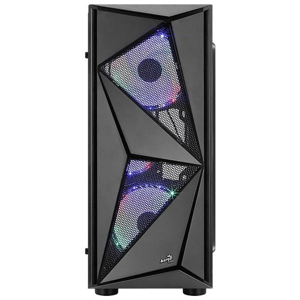 Carcasa Aerocool Glider Cosmo iluminare RGB neagra, SPCC Steel ATX Mid Tower, fara sursa (tip ATX, montata sus), interior vopsit negru, 1x3.5” (intern), 4x2.5” (intern), fata – 2x 120mm LED RGB fans (inclus) / 1x 120mm fans (optional), spate – 1x 120mm fan (optional), design premium cu panou lateral din sticla securizata, 1x USB 3.0, 2x USB 2.0, HD AudioATX / microATX / Mini-ITX, sloturi expansiune: x7, inaltime maxima cooler procesor: 157mm, lungime maxima placa video: pana la 325mm fara radiator montat, suport radiatoare water cooling: fata – 1x 120/240mm, spate – 1x 120mm, dimensiuni (HxWxD): 203x440x411mm