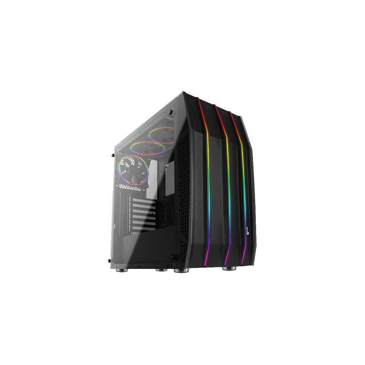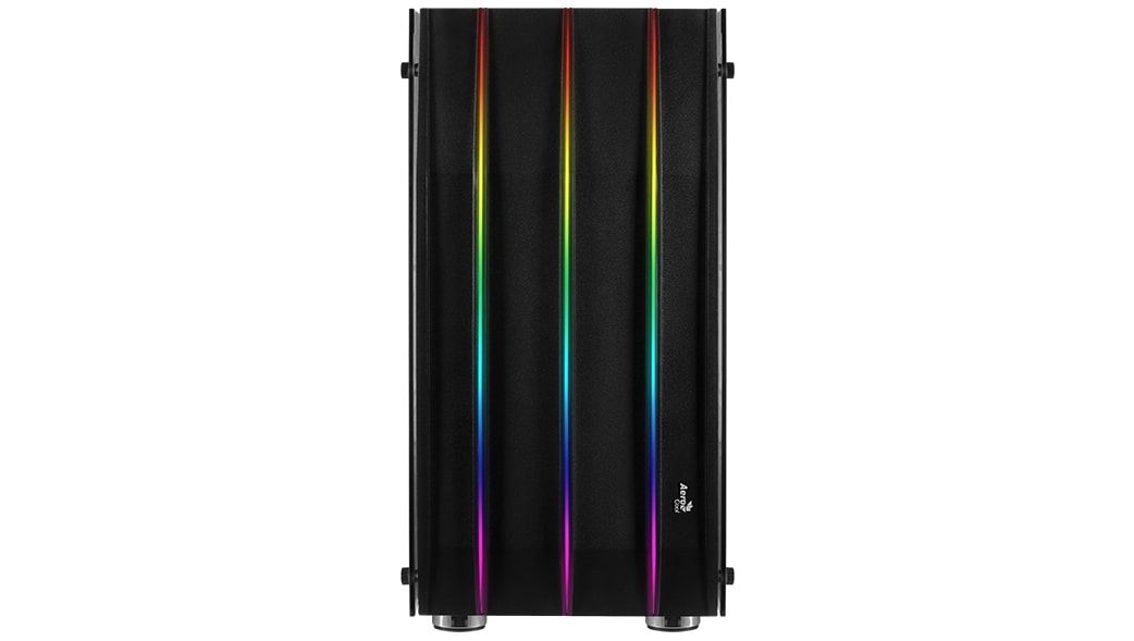 Carcasa Aerocool Klaw neagra, SPCC Steel ATX Mid Tower, fara sursa (tip ATX, montata jos), interior vopsit negru, 2x2.5”/3.5” (intern), 4x2.5” (intern), fata – 3x 120mm/2x 140mm fans (optional), spate – 1x 120mm LED aRGB fan (inclus), tavan – 2x 120mm LED aRGB fans (inclus) / 2x 140mm (optional), design premium cu panouri laterale din sticla securizata si panou frontal cu benzi LED aRGB, include controller RGB (se mai pot adauga inca 7 ventilatoare), 1x USB 3.0, 2x USB 2.0, HD Audio ATX / microATX / Mini-ITX, sloturi expansiune: x7, inaltime maxima cooler procesor: 164mm, lungime maxima placa video: 370mm, suport radiatoare water cooling: fata – 1x 240/280mm, spate – 1x 120mm, dimensiuni (HxWxD): 445.5x228x461mm, greutate: 7.52kg