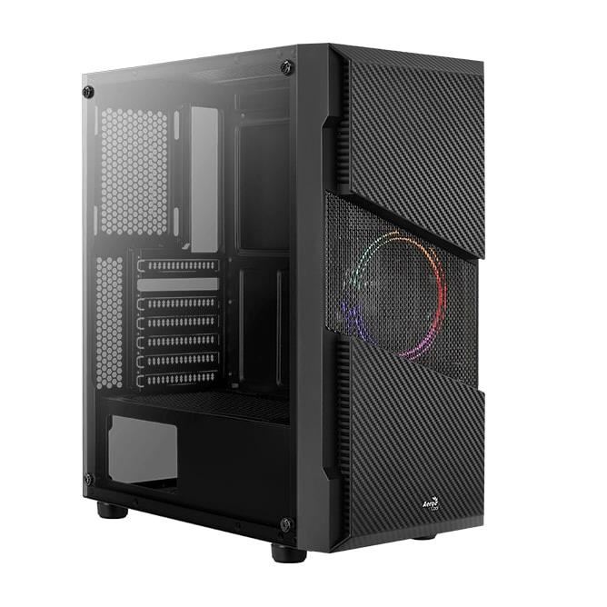 Carcasa Aerocool Menace Saturn V1 iluminare FRGB neagra, SPCC Steel ATX Mid Tower, fara sursa (tip ATX, montata jos), interior vopsit negru, 2x3.5” (1 x 3.5” sau 1 x 3.5”/2.5″ intern), 3x2.5” (2 x 2.5” sau 1 x 2.5”/3.5” intern), fata – 1x 120mm LED fixed RGB fans (inclus) / 2x 120mm / 2x 140mm fans (optional), spate – 1x 120mm fan (optional), tavan – 2x 120mm fans (optional), podea – 2x 120mm fans (optional), design premium cu panou lateral din sticla securizata, 2x USB 3.0, HD Audio ATX / microATX / Mini-ITX, sloturi expansiune: x7, inaltime maxima cooler procesor: 157mm, lungime maxima placa video: pana la 317mm fara radiator montat, suport radiatoare water cooling: fata – 1x 120/240mm, spate – 1x 120mm, dimensiuni: 205x457x392mm