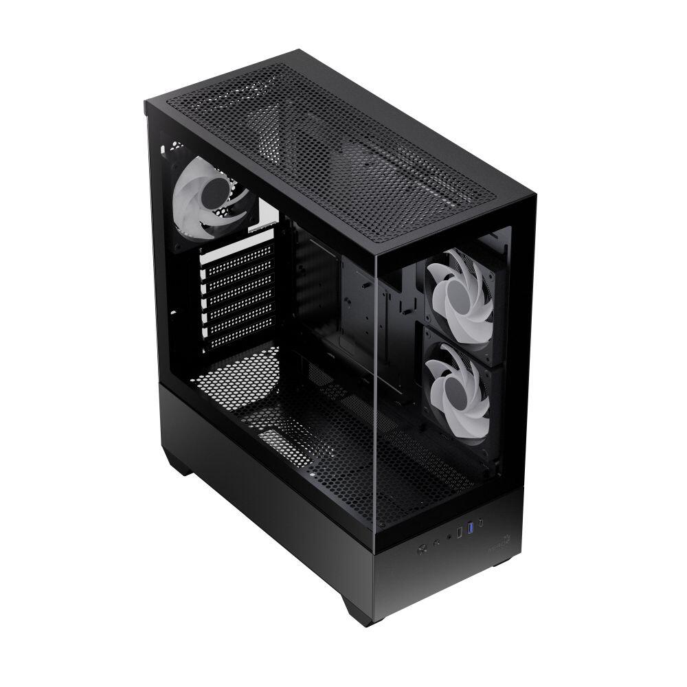 Carcasa Aerocool P500D Digi G V1 neagra, SPCC Steel ATX + Tempered Glass Mid Tower, fara sursa (tip ATX, montata jos), interior vopsit negru, 1x 3.5” (intern), 2x 2.5” (intern), lateral – 2x 120mm ARGB LED fans (inclus), spate – 1x 120mm ARGB LED fan (inclus), tavan – 3x 120mm / 2x 140mm fan (optional), podea – 3x 120mm fans (optional), display pentru afisarea temperaturii sau a sarcinii procesorului si a placii video, 1x USB Type-C, 1x USB 3.0, 1x USB 2.0, HD Audio, ATX / microATX / mini-ITX, sloturi expansiune: x7, inaltime maxima cooler procesor: 165mm, lungime maxima placa video: 418mm, suport radiator water cooling: tavan – 1x 120/140/240/280/360mm, spate – 1x 120mm, adancime compartiment cabluri: 24.5mm, dimensiuni (WxHxD): 212x490x437.5mm