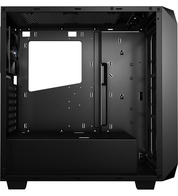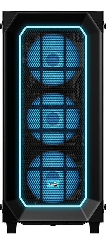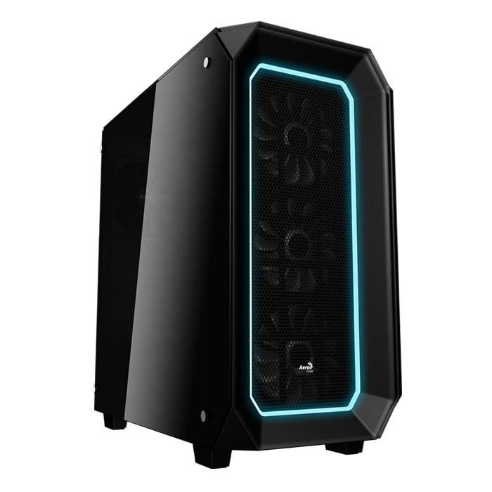 Carcasa Aerocool Project7 C0 Pro neagra, SPCC Steel ATX Mid Tower, fara sursa (tip ATX, montata jos), interior vopsit negru, 2x3.5” (intern), 2x2.5” (intern), fata – 3x 120mm LED RGB fans (inclus) / 2x 140mm fans (optional), spate – 1x 120mm fan (inclus) / 1x 140mm fan (optional), tavan – 2x 120/140mm fans (optional), design premium cu panouri laterale din sticla securizata si panou frontal cu banda LED RGB cu diverse efecte de iluminare, inlcude fan controller (se pot conecta maxim 5 ventilatoare), 2x USB 3.0, HD Audio, ATX / microATX / Mini-ITX, sloturi expansiune: x7, inaltime maxima cooler procesor: 175mm, lungime maxima placa video: 390mm (cu ventilator frontal montat) / 415mm (fara ventilator frontal montat), suport radiatoare water cooling: fata – 1x 280/360mm, spate – 1x 120/140mm, dimensiuni (HxWxD): 468x214.4x451mm, greutate: 8.4kg