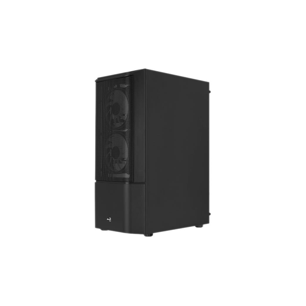 Carcasa Aerocool Quantum Mesh V2 neagra, SPCC Steel ATX Mid Tower, fara sursa (tip ATX, montata jos), interior vopsit negru, 2x 2.5”/3.5” (intern) 2x 2.5” (intern, cand este montata o placa de baza M-ITX), fata – 2x 120mm fRGB LED fans (inclus) / 2x 140mm fans (optional), spate – 1x 120mm fRGB LED fans (inclus), podea – 2x 120mm fans (optional), tavan – 2x 120mm fan (optional), 2x USB 3.0, 1x USB 2.0, HD Audio, ATX / microATX / mini-ITX, sloturi expansiune: x7, inaltime maxima cooler procesor: 158mm, lungime maxima placa video: 297mm (fara ventilatoare montate), suport radiator water cooling: fata – 1x 120/240/280mm, spate – 1x 120mm, dimensiuni (HxWxD): 450x206x360mm, greutate: 4.3kg