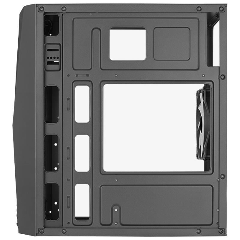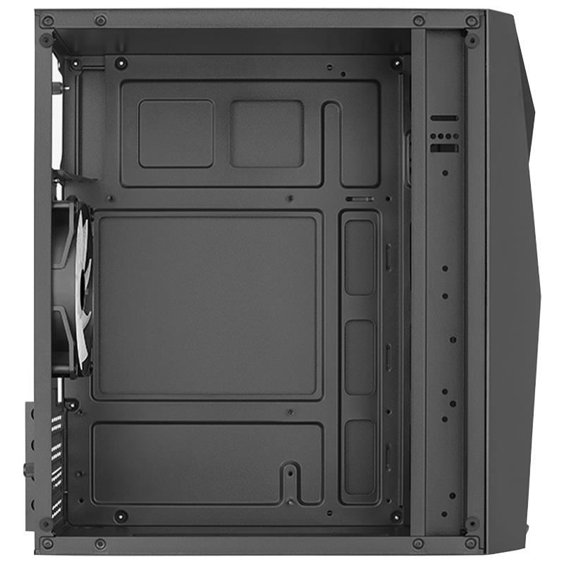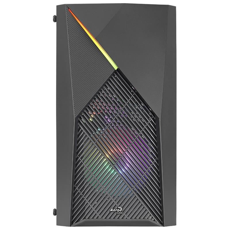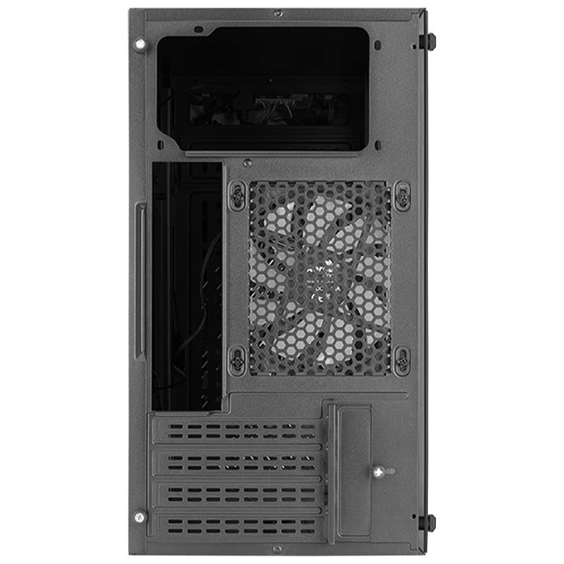 Carcasa Aerocool Raider Mini RGB neagra, SPCC Steel ATX Mini Tower, fara sursa (tip ATX, montata sus), interior vopsit negru, 2x3.5” (intern), 1x2.5” (intern), fata – 1x 120mm RGB fans (inclus) / 1x 120mm fan (optional), spate – 1x 120mm RGB fan (inclus), design premium cu panou lateral din sticla securizata si panou frontal iluminat RGB, 1x USB 3.0, 1x USB 2.0, HD Audio, microATX / Mini-ITX, sloturi expansiune: x4, inaltime maxima cooler procesor: 159mm, lungime maxima placa video: 285mm fara a monta radiator in partea frontala, suport radiatoare water cooling: fata – 1x 120mm , spate – 1x 120mm (radiator mai mic de 154mm), dimensiuni (HxWxD): 352.5x196x345mm, greutate: 4.15kg