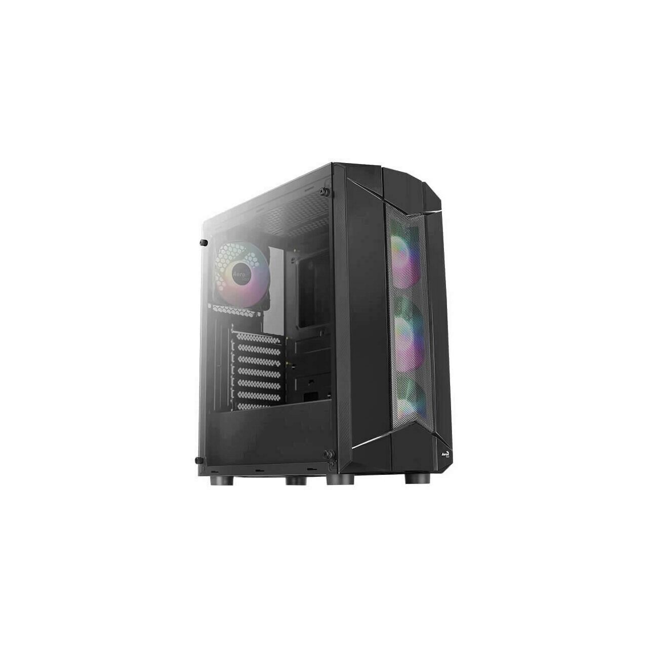 Carcasa Aerocool Sentinel neagra, SPCC Steel ATX Mid Tower, fara sursa (tip ATX, montata jos), interior vopsit negru, 1x 3.5” (intern), 1x2.5”/3.5” (intern), 2x2.5” (intern), fata – 3x 120mm LED aRGB fans (inclus) / 2x 140mm fans (optional), spate – 1x 120mm LED aRGB fan (inclus), tavan – 2x 120mm fans (optional), design premium cu panou lateral din sticla securizata, include controller RGB (se mai pot adauga inca 2 ventilatoare), 1x USB 3.0, 2x USB 2.0, HD Audio ATX / microATX / Mini-ITX, sloturi expansiune: x7, inaltime maxima cooler procesor: 164mm, lungime maxima placa video: 325mm, suport radiatoare water cooling: fata – 1x 240mm, tavan – 1x 240mm, spate – 1x 120mm, dimensiuni (HxWxD): 445x218x387mm, greutate: 5.07kg
