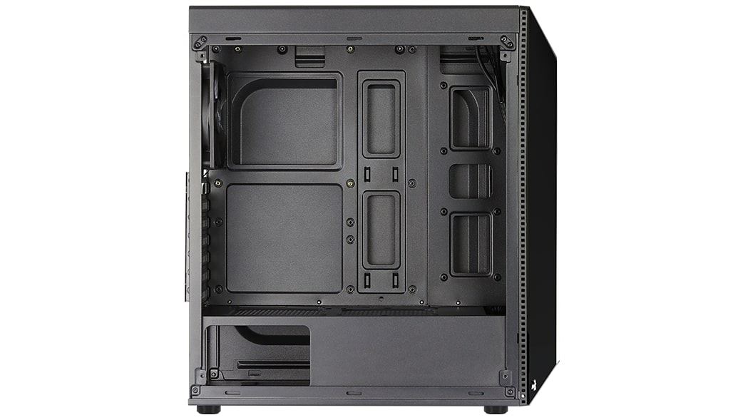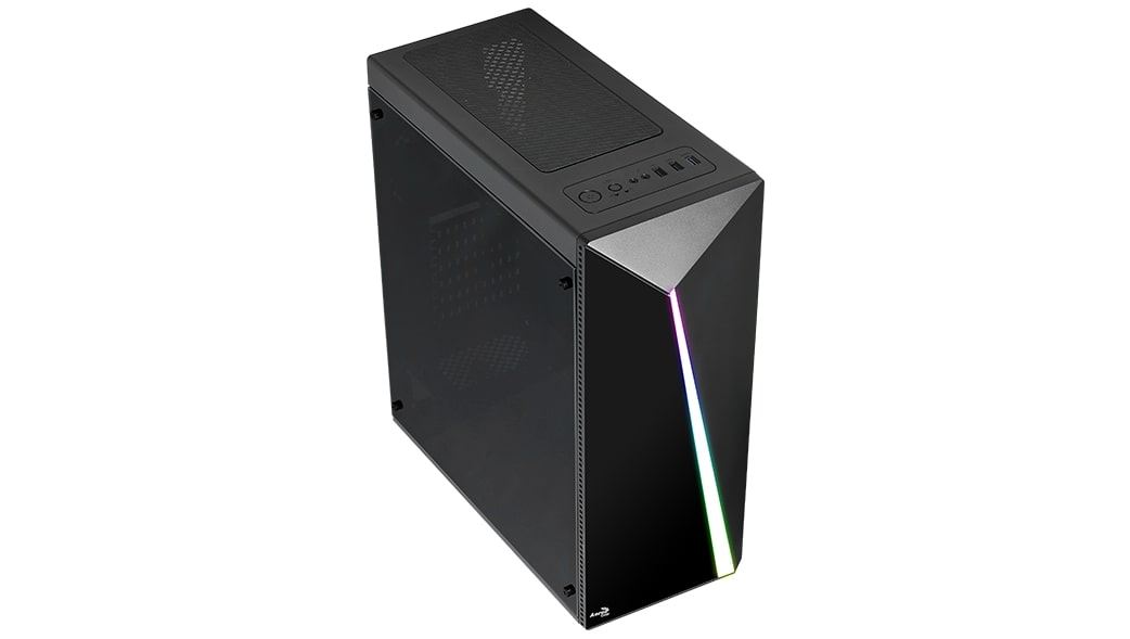 Carcasa Aerocool Shard neagra, SPCC Steel ATX Mid Tower, fara sursa (tip ATX, montata jos), interior vopsit negru, 2x3.5” (intern), 2x2.5” (intern), fata – 3x 120mm fans (optional), spate – 1x 120mm fan (inclus), tavan – 2x 120mm fans (optional), podea – 2x 120mm fans (optional), design premium cu panou lateral din plexiglass si panou frontal cu banda LED RGB cu diverse efecte de iluminare, 1x USB 3.0, 2x USB 2.0, HD Audio ATX / microATX / Mini-ITX, sloturi expansiune: x7, inaltime maxima cooler procesor: 155mm, lungime maxima placa video: 355mm, suport radiatoare water cooling: fata – 1x 240mm, dimensiuni (HxWxD): 444x194x423.5mm, greutate: 3.37kg