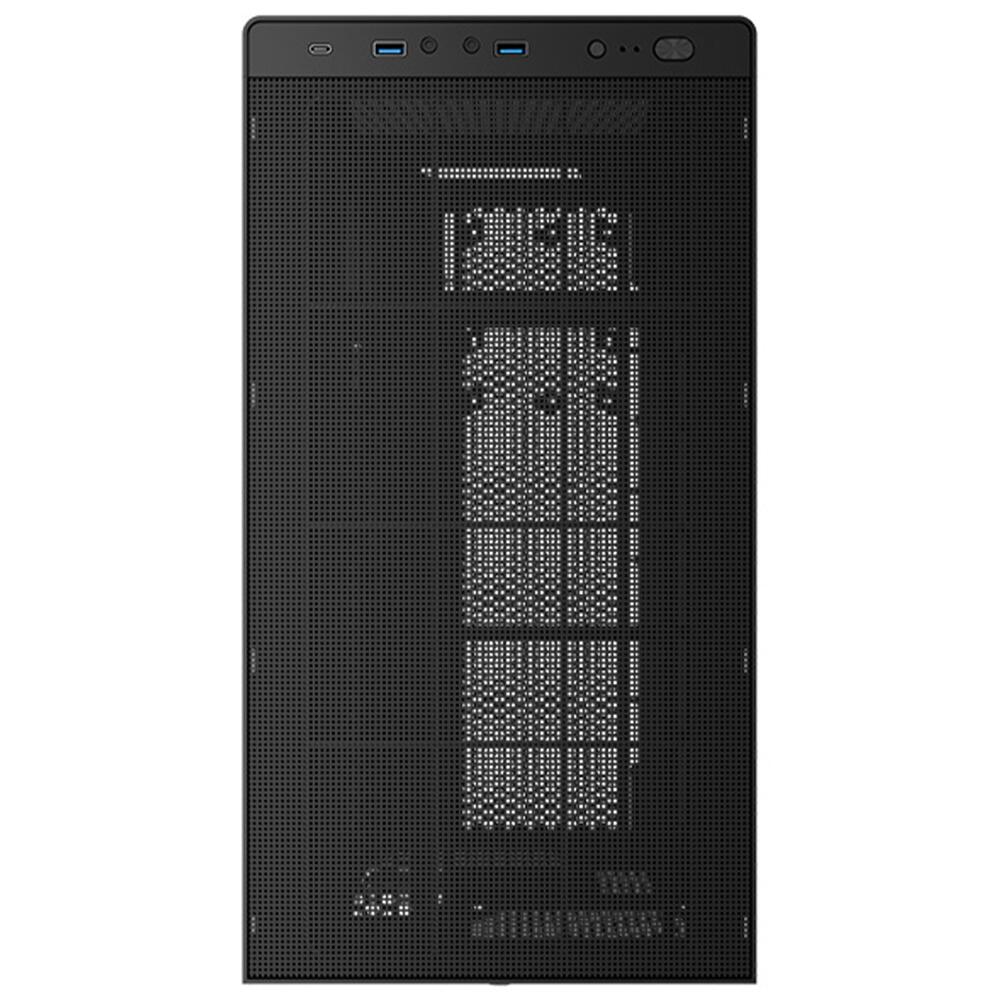 Carcasa Aerocool Stormfront Mini V1 neagra, SPCC Steel ATX Mini Tower, fara sursa (tip ATX, montata jos), interior vopsit negru, 2x 2.5”/3.5” (intern), 5x 2.5” (intern), fata – 1x 120mm fans (optional), spate – 1x 120mm fan (optional), podea – 3x 120mm fans (optional), tavan – 2x 120mm fan (optional), 2x USB 3.0, 1x USB Type-C, HD Audio, microATX / mini-ITX, sloturi expansiune: x5, inaltime maxima cooler procesor: 165mm, lungime maxima placa video: 370mm (fara ventilator montat), suport radiator water cooling: tavan – 1x 120/240mm, spate – 1x 120mm, spatiu pentru cable management de 30mm adancime, dimensiuni (WxHxD): 220x381x422mm