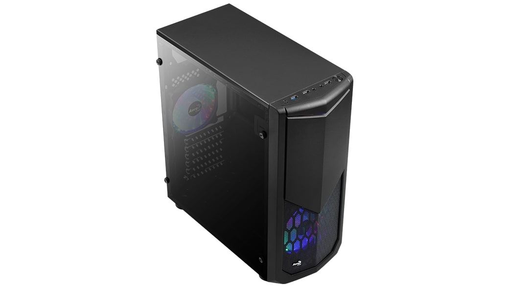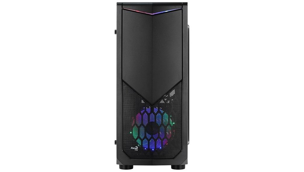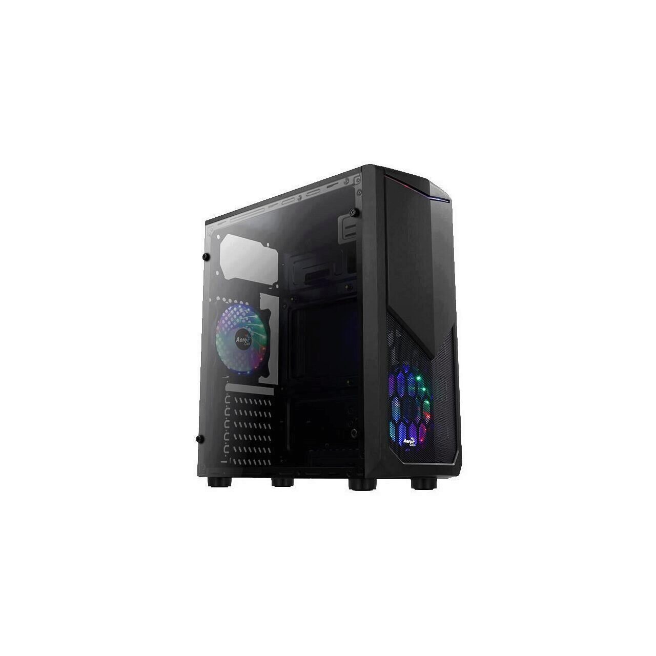 Carcasa Aerocool Tomahawk-A neagra, SPCC Steel ATX Mid Tower, fara sursa (tip ATX, montata sus), interior vopsit negru, 1x3.5” (intern), 4x2.5” (intern), fata – 1x 120mm LED RGB fans (inclus) / 2x 120mm fans (optional), spate – 1x 120mm LED RGB fan (inclus), tavan – 2x 120mm fans (optional), podea – 2x 120mm fans (optional), design premium cu panou lateral din plexiglass, 1x USB 3.0, 2x USB 2.0, HD Audio ATX / microATX / Mini-ITX, sloturi expansiune: x7, inaltime maxima cooler procesor: 157mm, lungime maxima placa video: 324mm, dimensiuni (HxWxD): 440.5x196x399mm