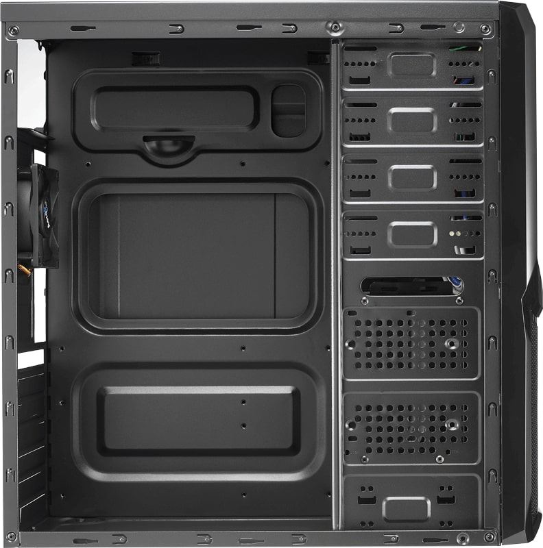 Carcasa Aerocool V3X Advanced neagra, SPCC Steel ATX Mid Tower, fara sursa (tip ATX, montata jos), interior vopsit negru, 3x5.25” (externe), 4x3.5” (intern), 2x2.5” (intern), fata – 1x 120mm fans (optional), spate – 1x 80mm fan (inclus), lateral – 2x 120mm fans (optional), 1x USB 3.0, 1x USB 2.0, HD Audio ATX / microATX / Mini-ITX, sloturi expansiune: x7, inaltime maxima cooler procesor: 150mm, lungime maxima placa video: 320mm, dimensiuni (HxWxD): 412x176x412mm