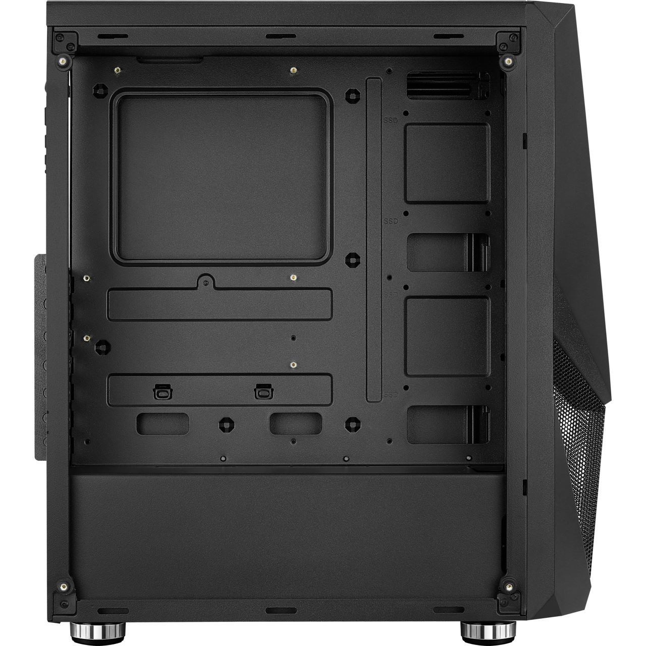 Carcasa Aerocool Zauron fRGB neagra, SPCC ABS Steel ATX Mid Tower, fara sursa (tip ATX, montata jos), interior vopsit negru, 2x3.5” (1 x 3.5” si 1 x 3.5”/2.5″ intern), 4x2.5” (2 x 2.5” si 1 x 2.5”/3.5” intern), fata – 1x 120mm LED fRGB fans (inclus) / 2x 120mm / 2x 140mm fans (optional), spate – 1x 120mm fan (optional), tavan – 2x 120mm fans (optional), design premium cu panou lateral din sticla securizata, 2x USB 3.0, 1x USB 2.0, HD Audio, ATX / microATX / Mini-ITX, sloturi expansiune: x7, inaltime maxima cooler procesor: 166mm, lungime maxima placa video: pana la 325mm fara radiator montat, suport radiatoare water cooling: fata – 1x 120/240mm, spate – 1x 120mm, dimensiuni (HxWxD): 442x217.7x409mm