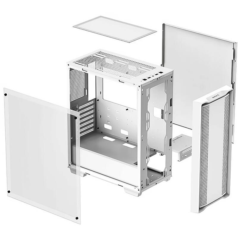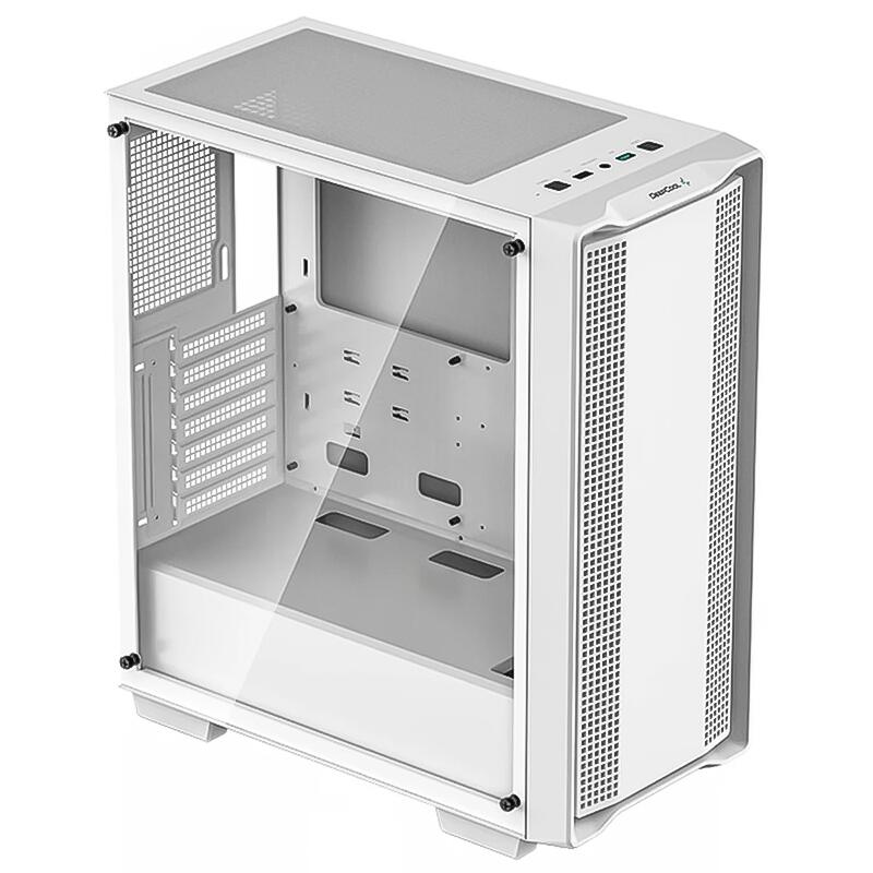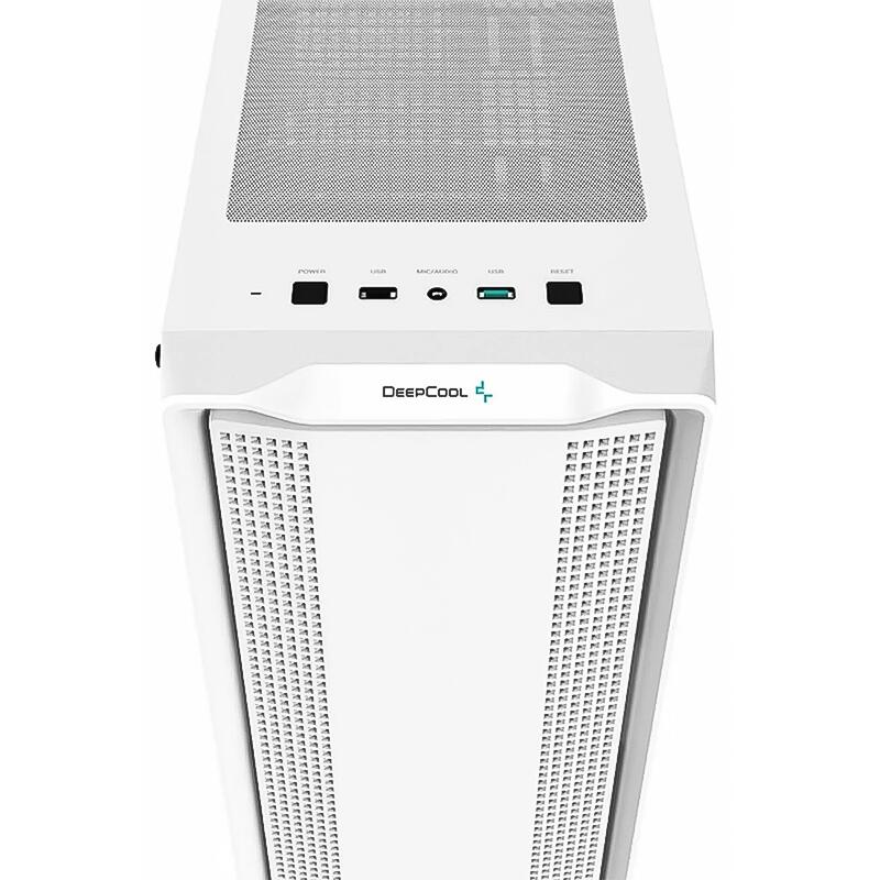 Carcasa Deepcool CC560 Limited alba, ABS+SPCC Steel ATX Mid Tower, fara sursa (tip ATX, montata jos), interior vopsit alb, 2x3,5”/2.5” (intern), 2+1x2,5” (intern), spate – 1x120/140mm fan (optional), fata – 3x120mm fan (optional) / 2x 140mm fan (optional), tavan – 2x 120/140mm fans (optional), 1x USB 2.0, 1x USB 3.0, HD Audio, design premium cu panou lateral din sticla securizata, sloturi expansiune: x7, ATX / microATX / Mini-ITX, inaltime maxima cooler procesor: 163mm, lungime maxima placa video: 370mm), suport radiatoare water cooling: spate – 120/140mm, fata – 120/140/240/280/360mm, tavan – 120/140/240/280mm, dimensiuni (LxWxH): 416x210x477mm, greutate: 5kg