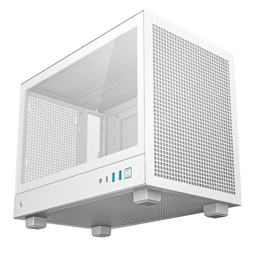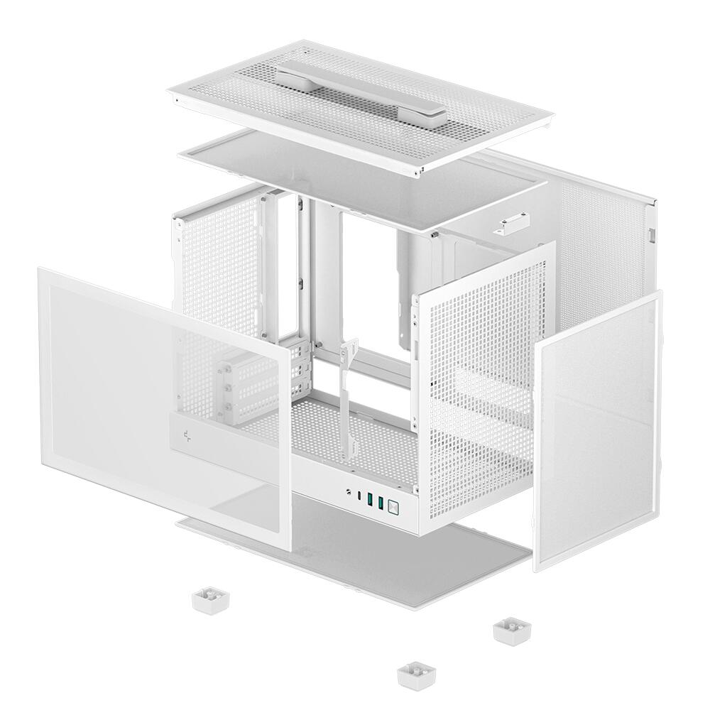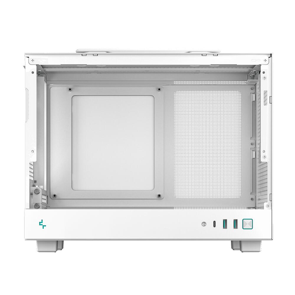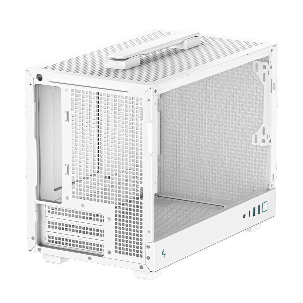 Carcasa Deepcool CH160 alba, ABS+SPCC+Tempered Glass, fara sursa (tip ATX (lungime maxima: 140mm) / SFX / SFX-L, montata jos), interior vopsit alb, 1x 2,5”/3.5”/120mm fan (frontal intern), spate – 1x120mm fan (optional), tavan – 2x 120mm fans (optional), 2x USB 3.0, 1x USB-Type-C Gen2, HD Audio, design premium cu panou lateral din sticla securizata, sloturi expansiune: x3, Mini-ITX, inaltime maxima cooler procesor: 172mm, lungime maxima placa video: SFX/SFX-L: 305mm / ATX: 230mm inaltime maxima placa video: 138mm, latime maxima placa video: 3 slot-uri, dimensiuni (LxWxH): 336x200x283.5mm, greutate: 3.3 kg