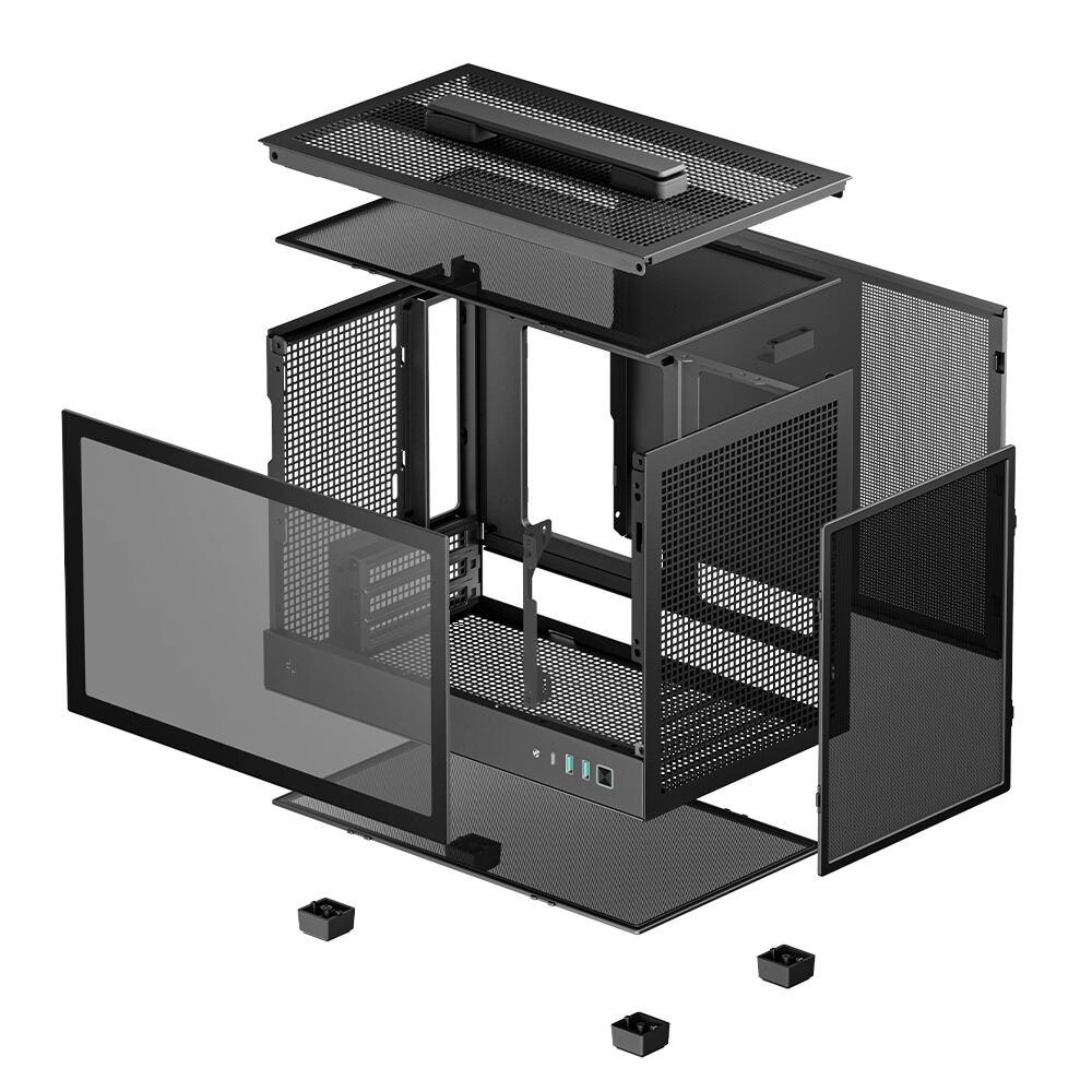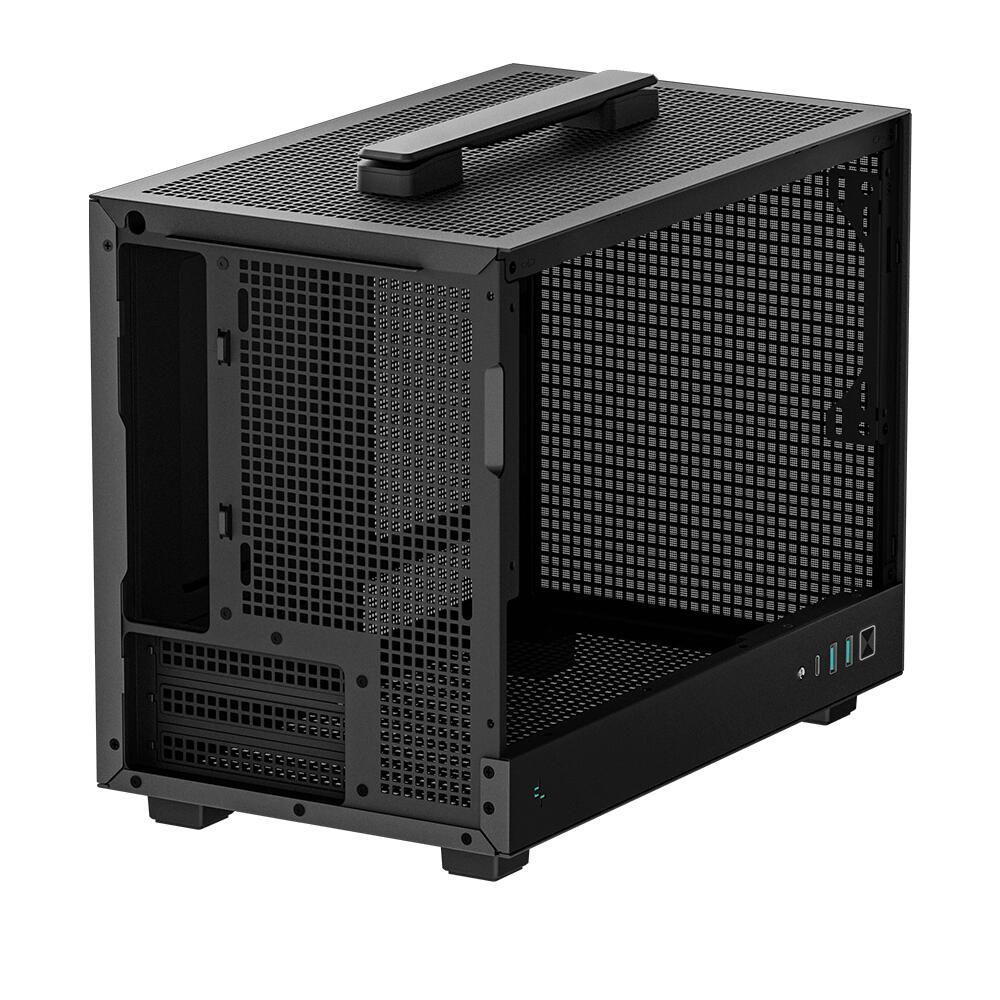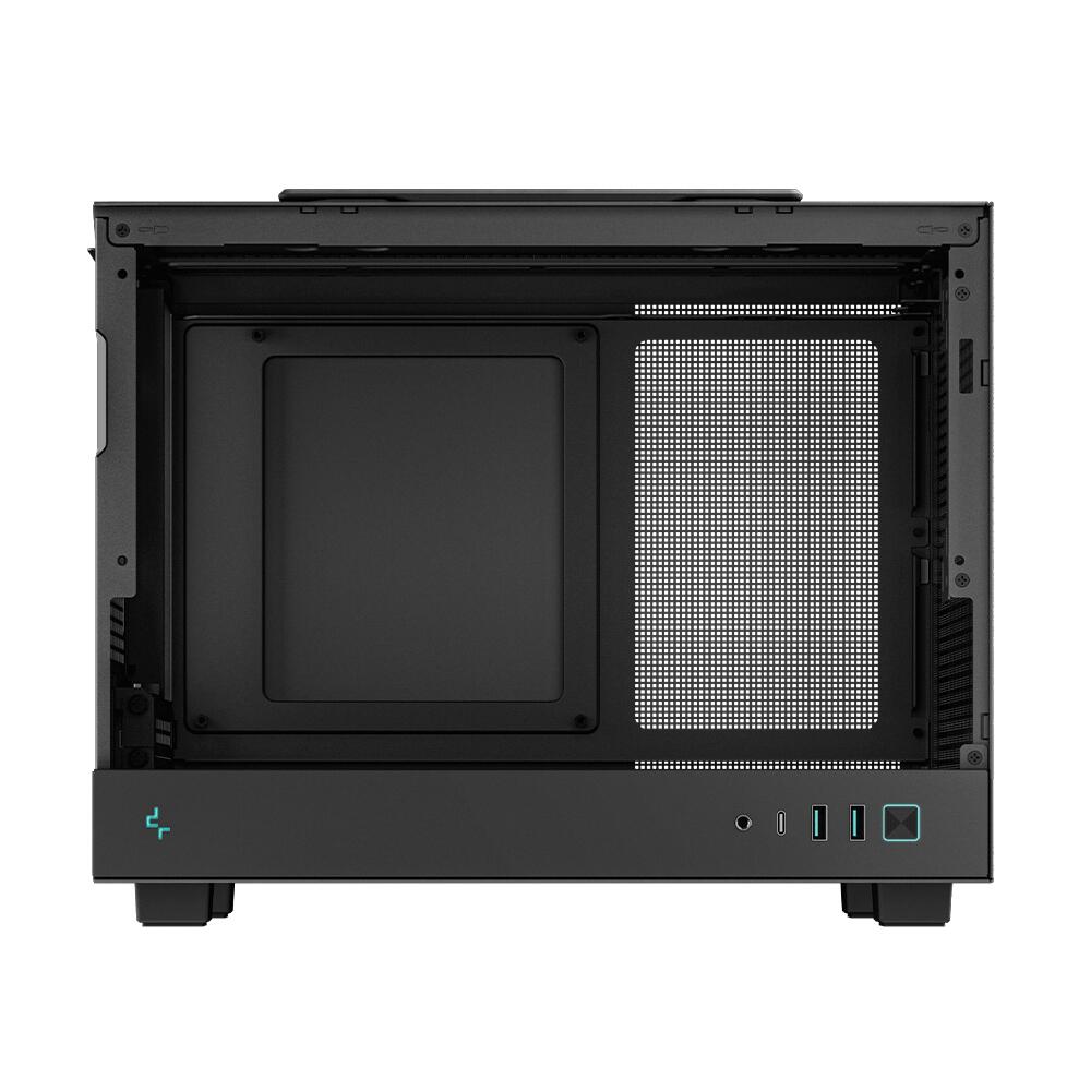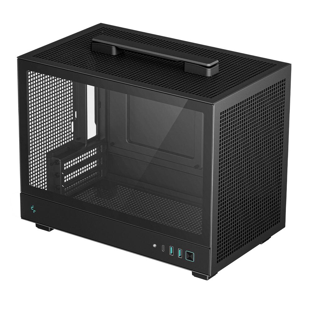 Carcasa Deepcool CH160 neagra, ABS+SPCC+Tempered Glass, fara sursa (tip ATX (lungime maxima: 140mm) / SFX / SFX-L, montata jos), interior vopsit negru, 1x 2,5”/3.5”/120mm fan (frontal intern), spate – 1x120mm fan (optional), tavan – 2x 120mm fans (optional), 2x USB 3.0, 1x USB-Type-C Gen2, HD Audio, design premium cu panou lateral din sticla securizata, sloturi expansiune: x3, Mini-ITX, inaltime maxima cooler procesor: 172mm, lungime maxima placa video: SFX/SFX-L: 305mm / ATX: 230mm inaltime maxima placa video: 138mm, latime maxima placa video: 3 slot-uri, dimensiuni (LxWxH): 336x200x283.5mm, greutate: 3.3 kg
