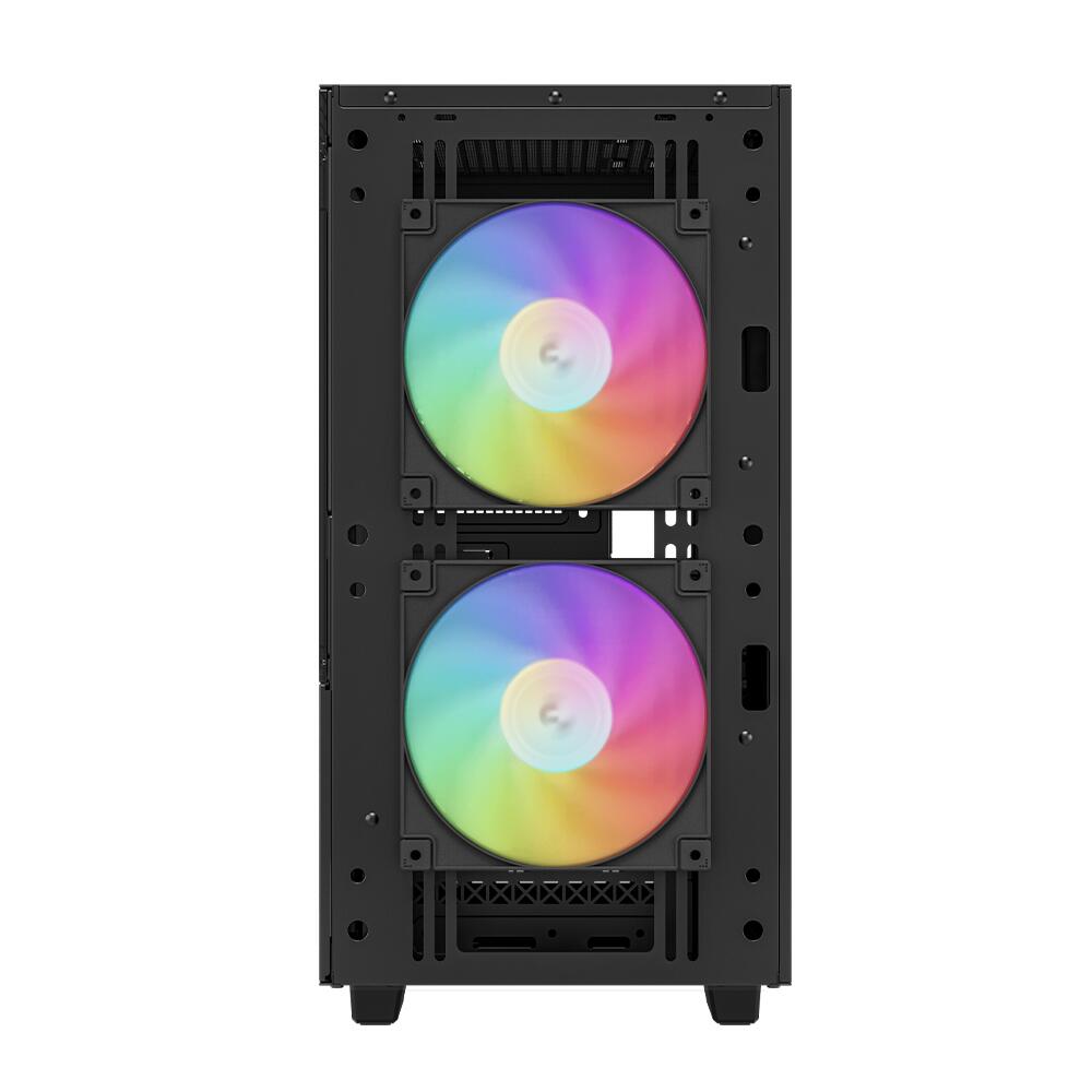 Carcasa Deepcool CH360 aRGB neagra, ABS+SPCC+Tempered Glass, fara sursa (tip ATX, montata jos), interior vopsit negru, 2x3,5”/2.5” (intern), 2+1x2,5” (intern), spate – 1x120mm aRGB LED fan (inclus), fata – 2x140mm aRGB fan (inclus) / 3x 120mm fan (optional), tavan – 2x 120mm / 2x 140mm fans (optional), podea – 2x 120mm fan (optional), 1x USB 3.0, 1x USB-Type-C, HD Audio, design premium cu panou lateral din sticla securizata si mesh metalic, include suport placa video, sloturi expansiune: x4, microATX / Mini-ITX, inaltime maxima cooler procesor: 165mm, lungime maxima placa video: 320mm, suport radiatoare water cooling: spate – 120mm, fata – 120/140/240/280/360mm, tavan – 120/140/240mm, dimensiuni (LxWxH): 428x215x431mm, greutate: 6 kg