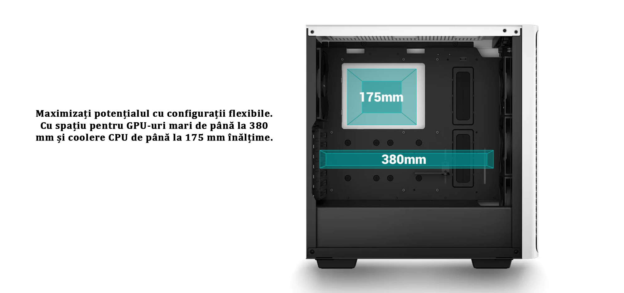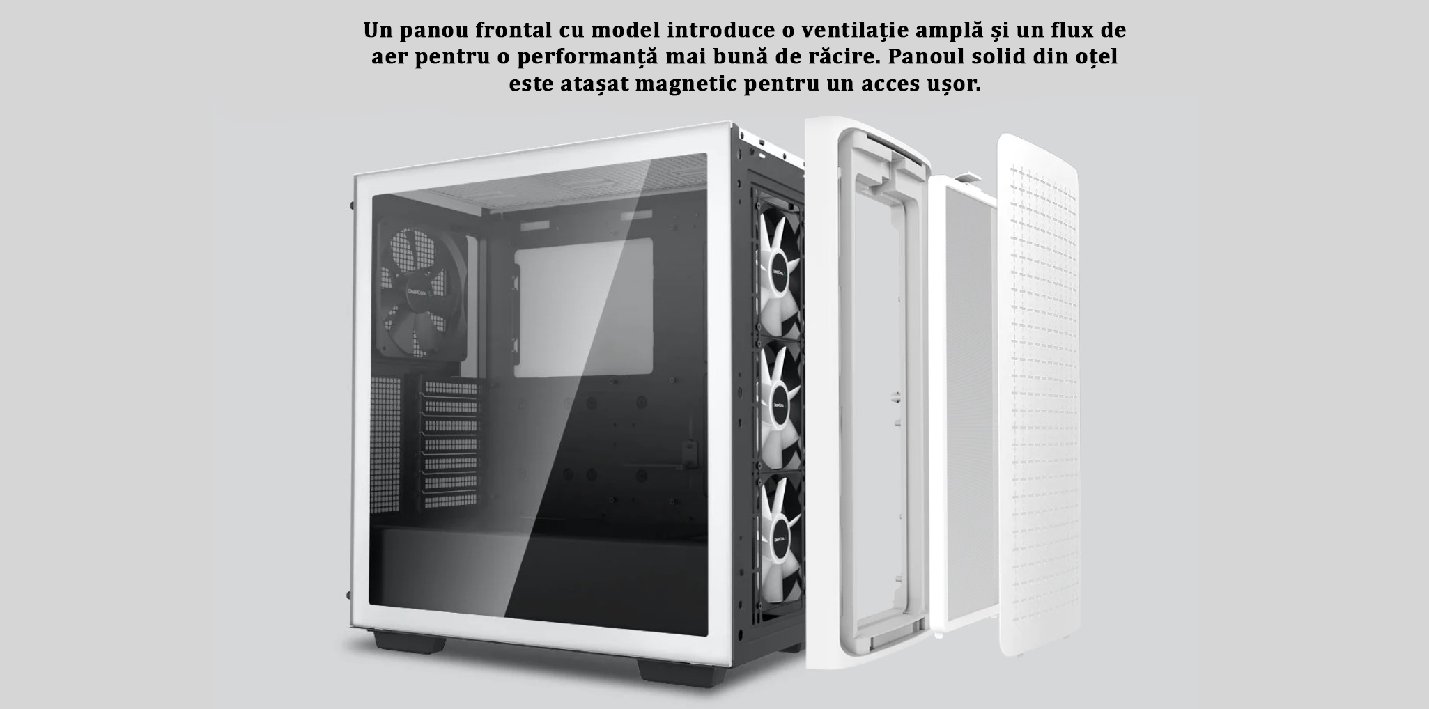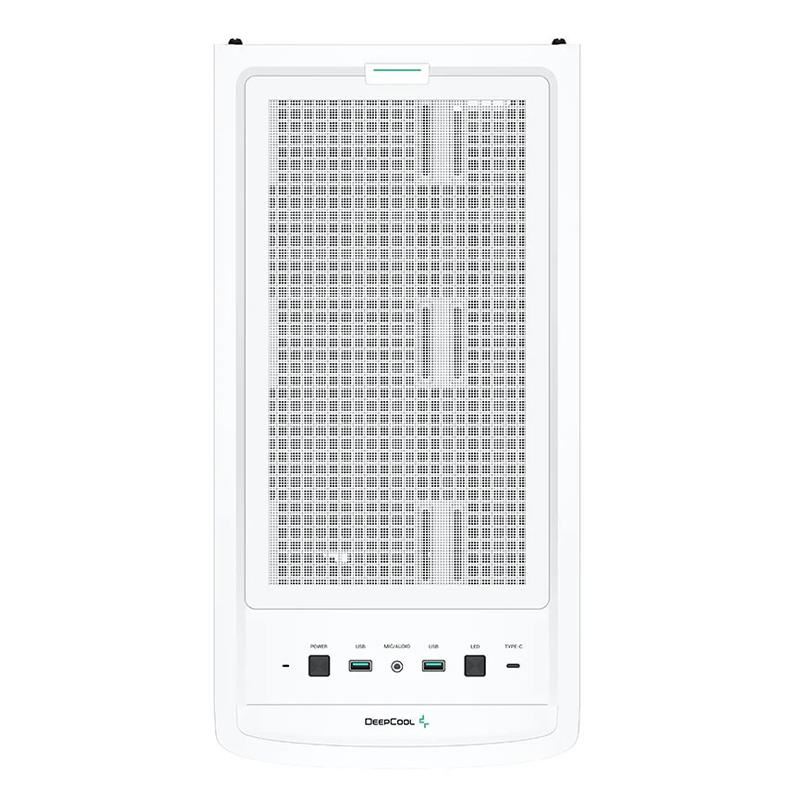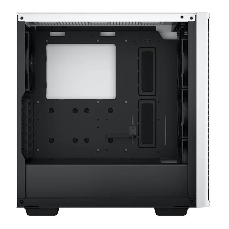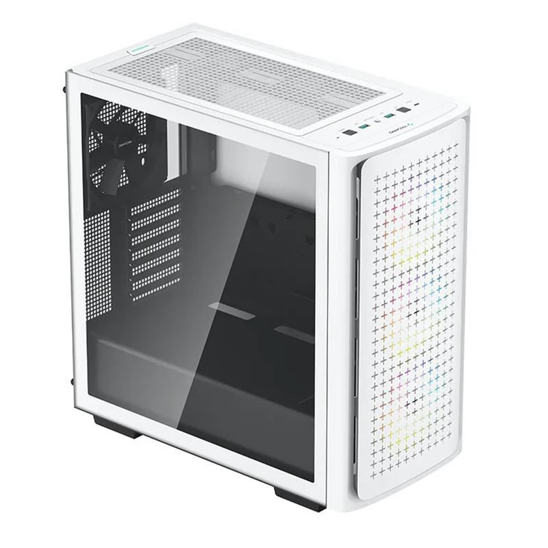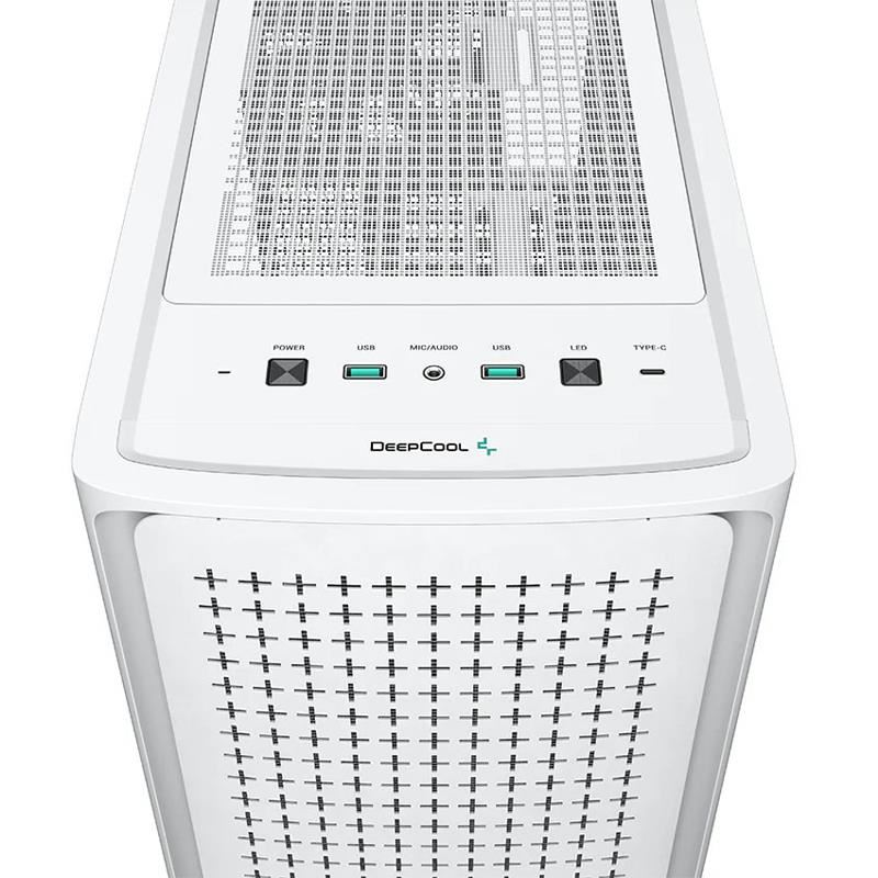 Carcasa Deepcool CK560 alba, ABS+SPCC Steel ATX Mid Tower, fara sursa (tip ATX, montata jos), interior vopsit negru, 2x3,5”/2.5” (intern), 2x2,5” (intern), spate – 1x120mm fan (inclus) / 1x 140mm (optional), fata – 3x120mm aRGB fan (inclus) / 2x 140mm fan (optional), tavan – 2x 120mm / 2x 140mm fans (optional), 2x USB 3.0, 1x USB Type-C, HD Audio, design premium cu panou lateral din sticla securizata, sloturi expansiune: x7, EATX / ATX / microATX / Mini-ITX, inaltime maxima cooler procesor: 175mm, lungime maxima placa video: 380mm), suport radiatoare water cooling: spate – 120/140mm, fata – 120/140/240/280/360mm, tavan – 120/140/240/280mm, dimensiuni (LxWxH): 456x230x471mm, greutate: 8 kg