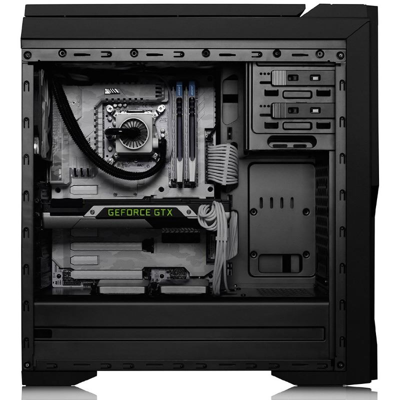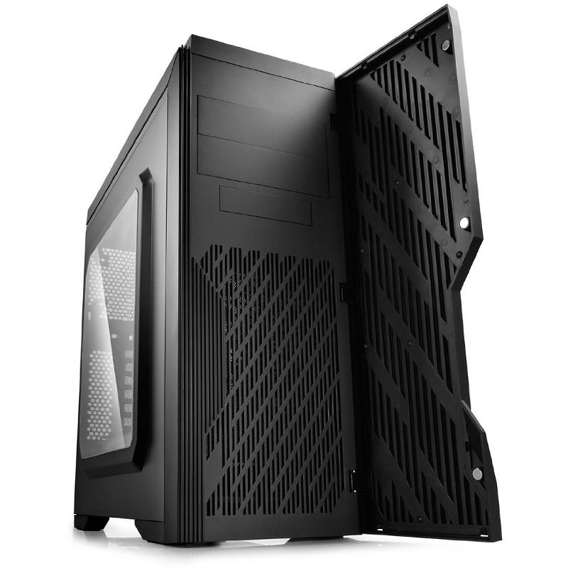 Deepcool Dukase Black, SPCC Steel ATX Mid Tower Case, interior vopsit negru, 2x5.25” (extern), 3x3.5” (intern), 3x2.5” (intern), fata – 1x 140 sau 2x 120mm fans (optional), spate – 1x 120mm fan (inclus), 1x USB 3.0, 1x USB 2.0, HD Audio, 1x fan controller, ATX / microATX / Mini-ITX, sloturi expansiune: x7, inaltime maxima cooler procesor: 170mm, lungime maxima placa video: 390mm, suport radiatoare water cooling: tavan – radiator 120/240/140/280mm, dimensiuni: L482.7xW213.4xH504mm, greutate: 6.49kg