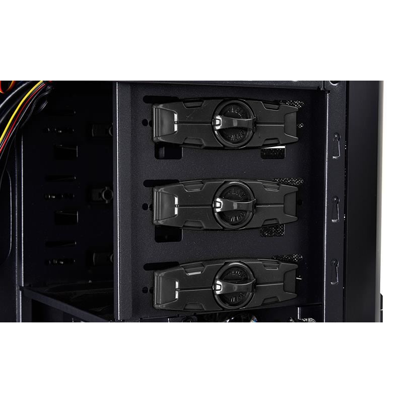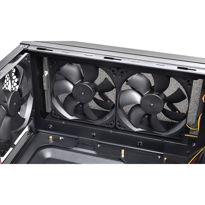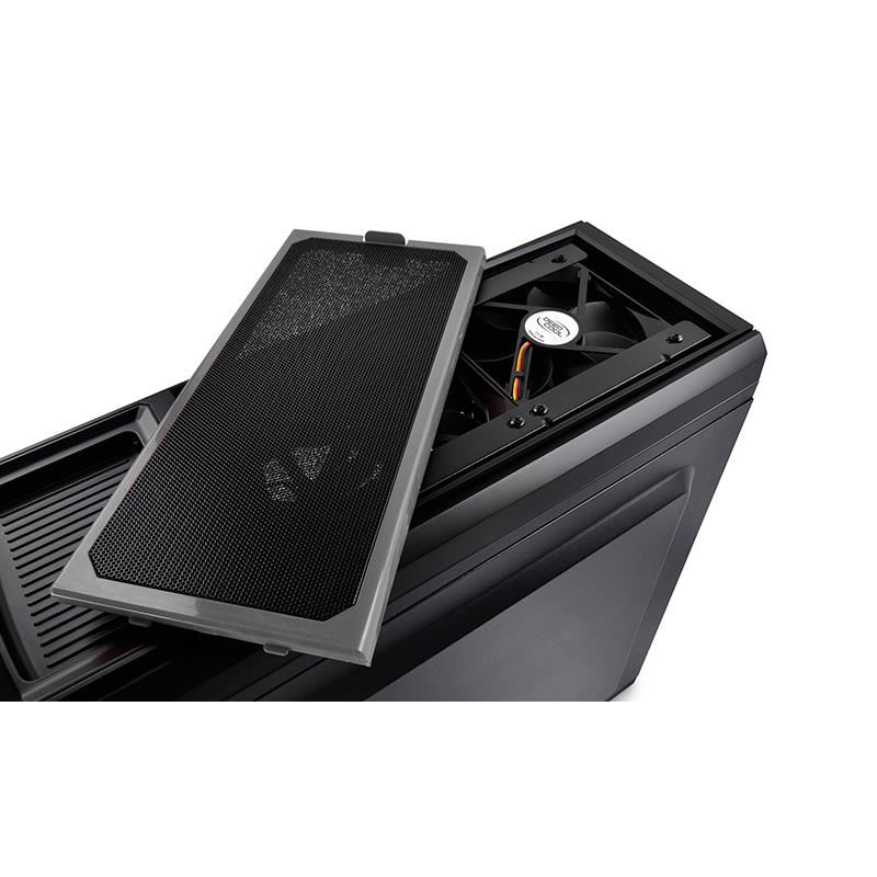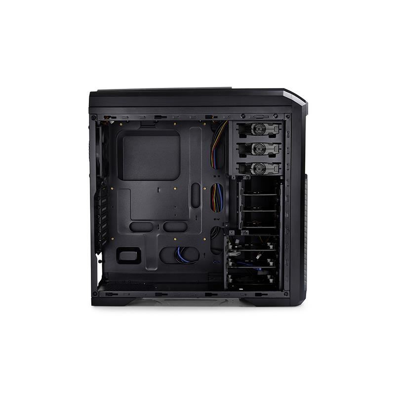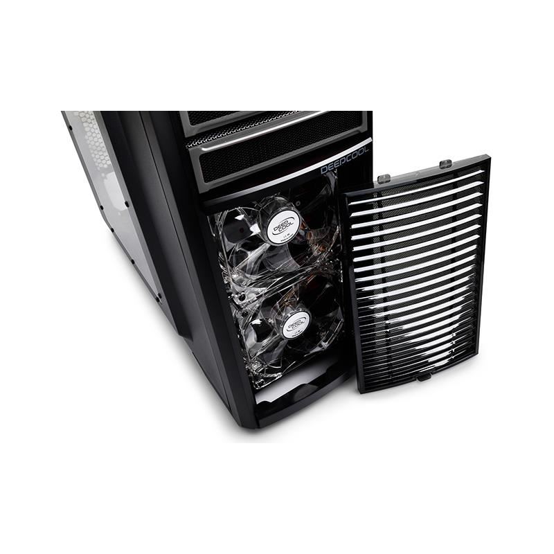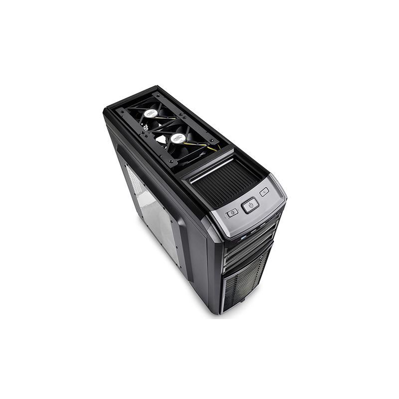 Deepcool Kendomen TI, SECC Steel ATX Mid Tower Case, interior vopsit negru, 2x5.25” (extern), 3x3.5”/2.5” (intern), 3x2.5” (intern), fata – 2x 120mm White LED fans (inclus), spate – 1x 120mm fan (inclus), tavan – 2x 120mm fans (inclus), 1x USB 3.0, 2x USB 2.0, HD Audio, 1x fan controller (pentru 2 ventilatoare), ATX / microATX / Mini-ITX, sloturi expansiune: x7, inaltime maxima cooler procesor: 160mm, lungime maxima placa video: 310mm, suport radiatoare water cooling: tavan – radiator 240mm, dimensiuni ((LxWxH): 491x200x486mm, greutate: 5.76kg