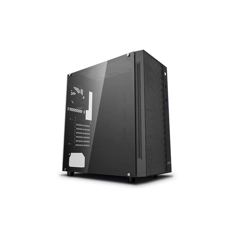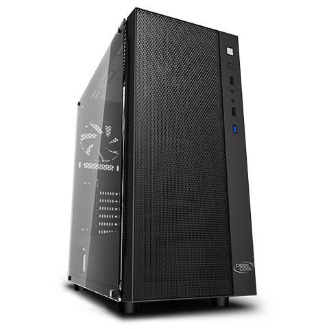 Carcasa Deepcool Matrexx 55 Mesh neagra, ABS+SPCC Steel ATX Mid Tower, fara sursa (tip ATX, montata jos), interior vopsit negru, 2x3,5”/2.5” (intern), 4x2,5” (intern), spate – 1x120mm fan (optional), fata – 3x120mm /2x 140mm fan (optional), tavan – 2x 120/140mm fans (optional), 1x USB 3.0, 2x USB 2.0, HD Audio, design premium cu panou lateral din sticla securizata, sloturi expansiune: x7, EATX / ATX / microATX / Mini-ITX, inaltime maxima cooler procesor: 168mm, lungime maxima placa video: 370mm, suport radiatoare water cooling: tavan – 120/140/240mm, spate – 120mm, fata – 120/140/240/280/360mm, dimensiuni (LxWxH): 440x210x480mm, greutate: 6.6 kg
