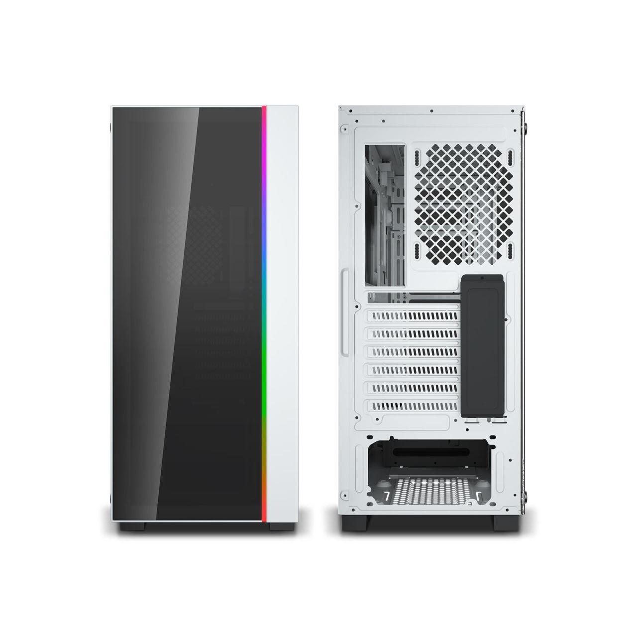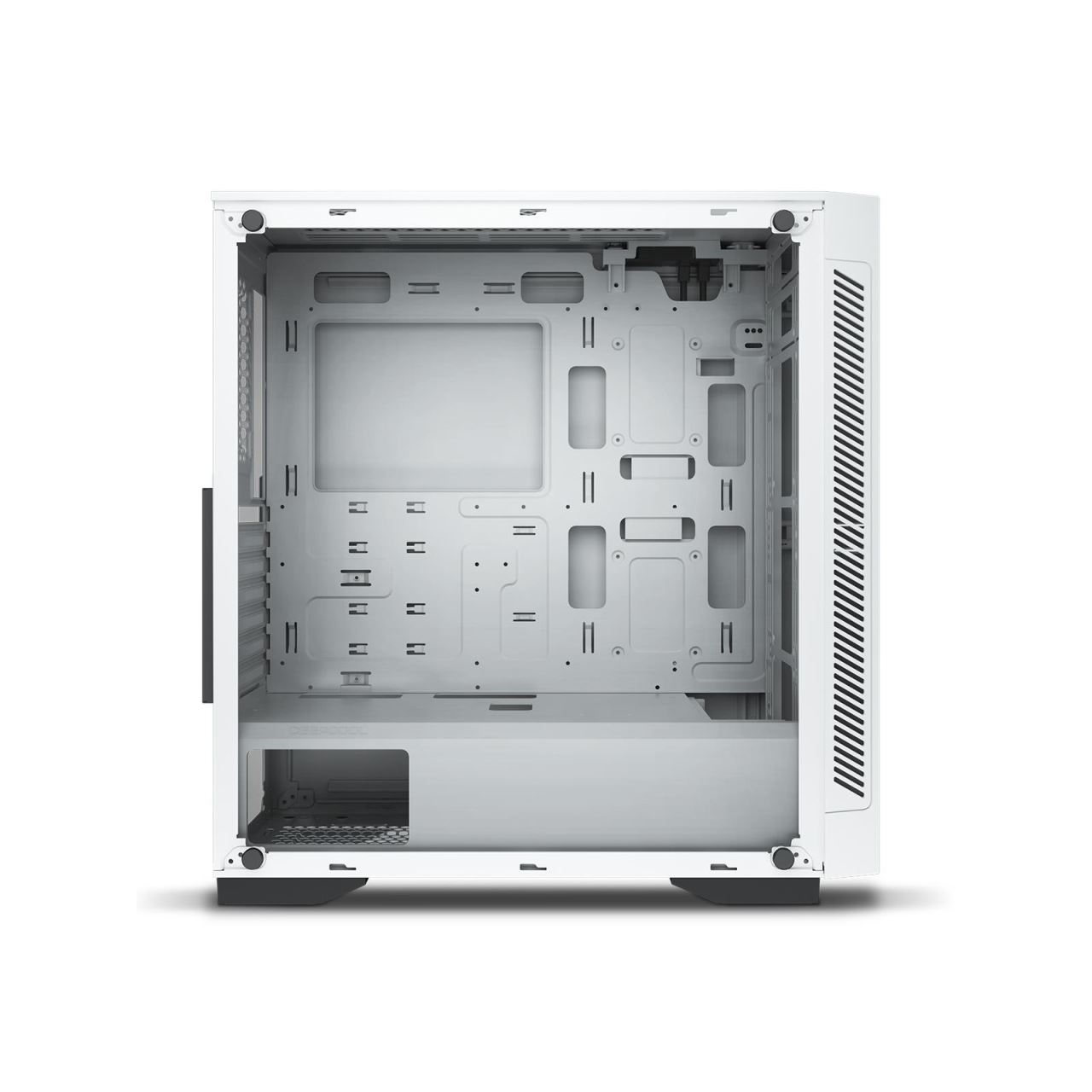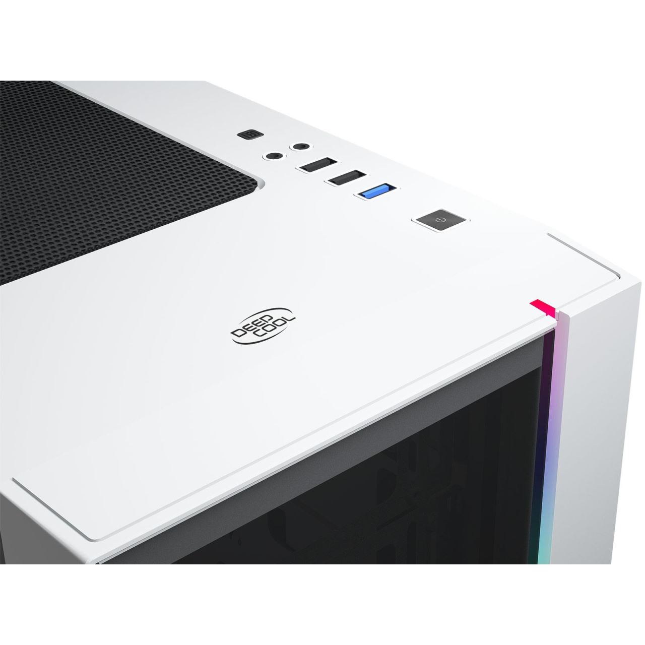 Carcasa Deepcool Matrexx 55 V3 aRGB alba, ABS+SPCC Steel ATX Middle Tower fara sursa (tip ATX, montata jos), interior vopsit negru, 2x3,5” (intern), 2x2,5” (intern), spate – 1x120mm fan (optional), fata – 3x120/140mm fans (optional) , tavan – 2x 120/140mm fans (optional), 1x USB 3.0, 2x USB 2.0, HD Audio,panou lateral si frontal din sticla securizata, panou frontal iluminat aRGB controlabil cu placile de baza(2 conectori, unul pentru sisteme de iluminare Deepcool/Gamer Storm si unul pentru placile de baza compatibile), sloturi expansiune: x7, EATX / ATX / microATX / Mini-ITX, inaltime maxima cooler procesor: 160mm, lungime maxima placa video: 370mm montat orizontal sau 340mm montata vertical, suport radiatoare water cooling: tavan – 1x 120/140/240mm, spate – 1x 120mm, fata – 1x 120/140/240/360mm, dimensiuni (LxWxH): 479 x 446 x 210mm, greutate: 7.4 kg