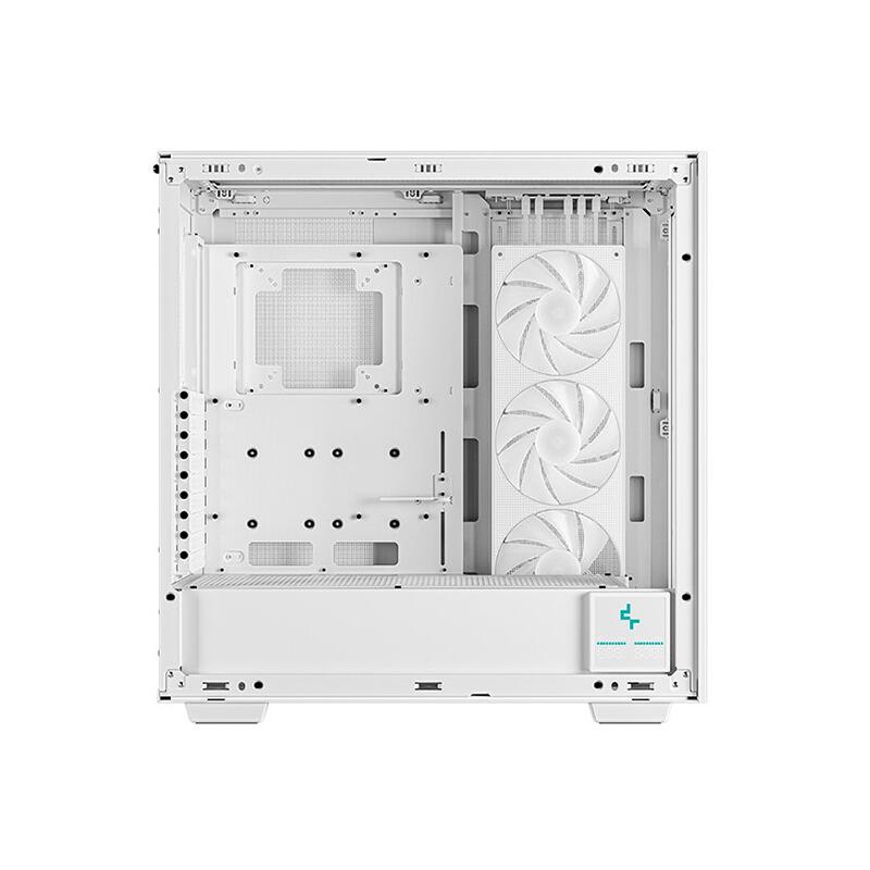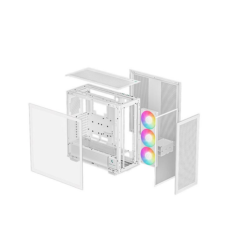 Carcasa Deepcool Morpheus alba, ABS+SPCC+Tempered Glass ATX Mid Tower, fara sursa (tip ATX, montata jos), interior vopsit alb, interiorul poate fi configurat in 2 moduri single chamber si unul dual chamber, 2x3,5” (intern), 2+1x2,5” (intern), spate – 1x120mm/140mm (optional, in configuratie single chamber), fata – 3x120mm/140mm fan 2x 180mm/200mm (optional), tavan – 3x120mm/140mm fan 2x 180mm/200mm fans (optional), podea – 3x120mm/140mm fan 2x 180mm/200mm fans (optional), lateral – 1x 420mm Trinity aRGB fans (inclus) / 3x 120mm/140mm fans (optional), 4x USB 3.0, 1x USB Type-C, HD Audio, design premium cu panou lateral din sticla securizata inclus, suport placa video ajustabil, sloturi expansiune: x9, Mini-ITX / M-ATX / ATX / E-ATX, inaltime maxima cooler procesor: 195mm (mod single chamber) sau 132mm (mod dual chamber), lungime maxima placa video: 480mm, suport radiatoare water cooling: spate – 120/140mm (mod single chamber), fata – 120/140/240/280/360/420mm, tavan – 120/140/240/280/360/420mm, lateral – 120/140/240/280/360/420 (mod dual chamber), podea – 120/140/240/280/360/420mm, dimensiuni (LxWxH): 528x250x551mm, greutate: 15.5 kg