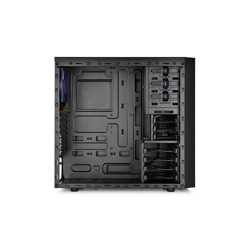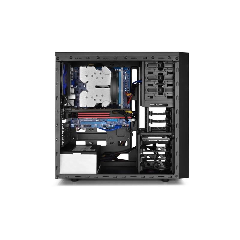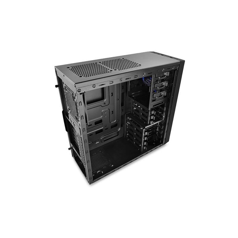 Deepcool Tesseract BF Black, SPCC Steel ATX Mid Tower Case, interior vopsit in negru, 3x5.25” (extern), 5x3.5” (intern), 3x2.5” (intern), fata – 1x 120mm fan (optional), spate – 1x 120mm fan (inclus), tavan – 2x 120mm fans (optional), lateral – 2x 120/92/80mm fans (optional), 1x USB 3.0, 1x USB 2.0, HD Audio, ATX / microATX / Mini ATX / Mini-ITX, sloturi expansiune: x7, inaltime maxima cooler procesor: 168mm, lungime maxima placa video: 310mm, filtre de praf incluse, dimensiuni: 472 x 210 x 454mm, greutate: 5.1kg