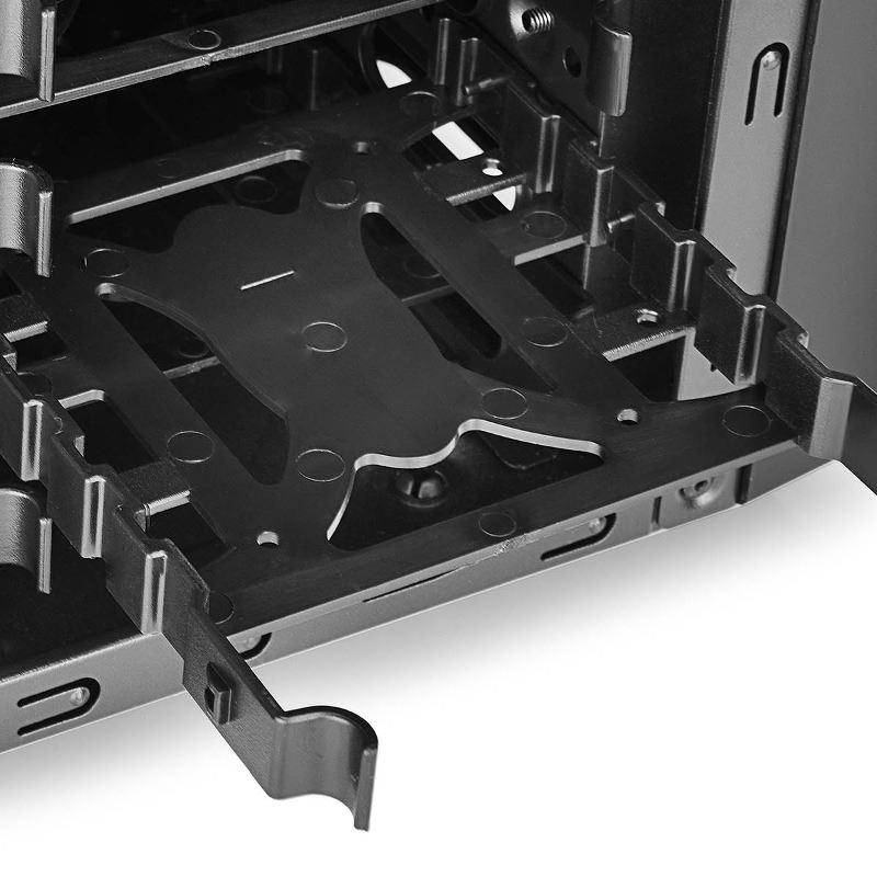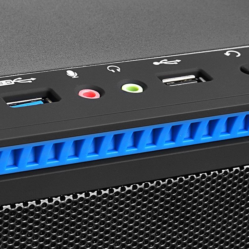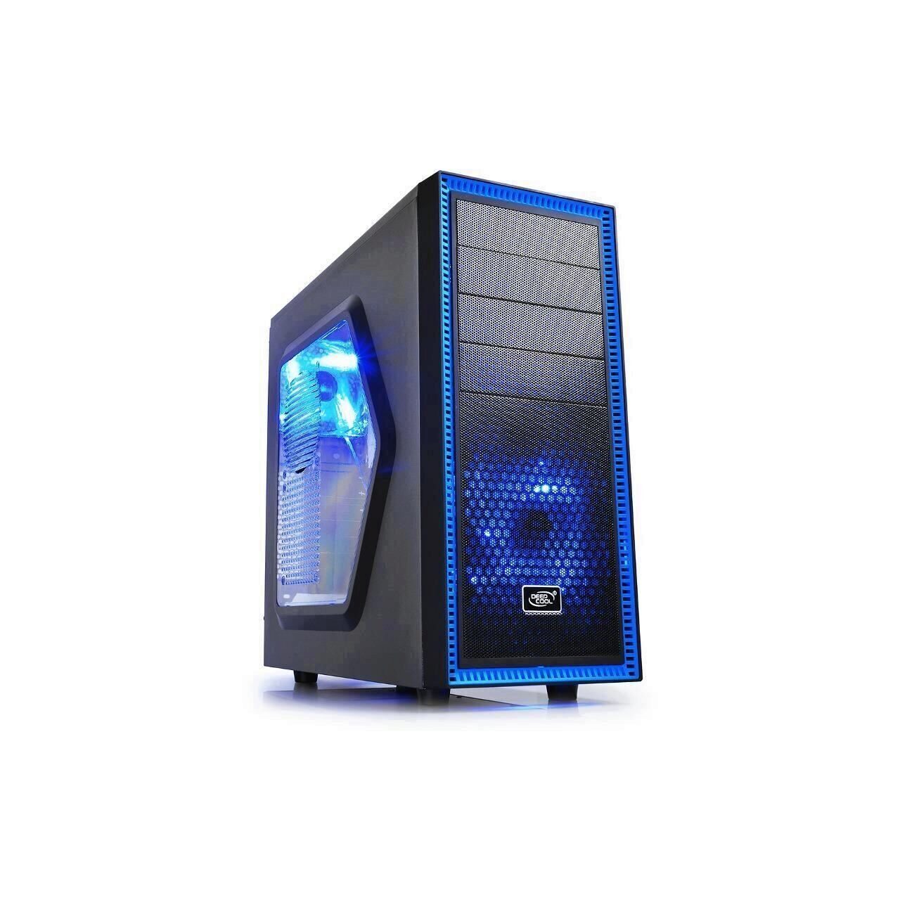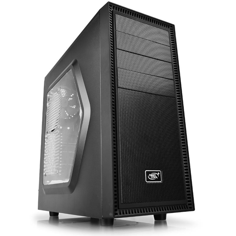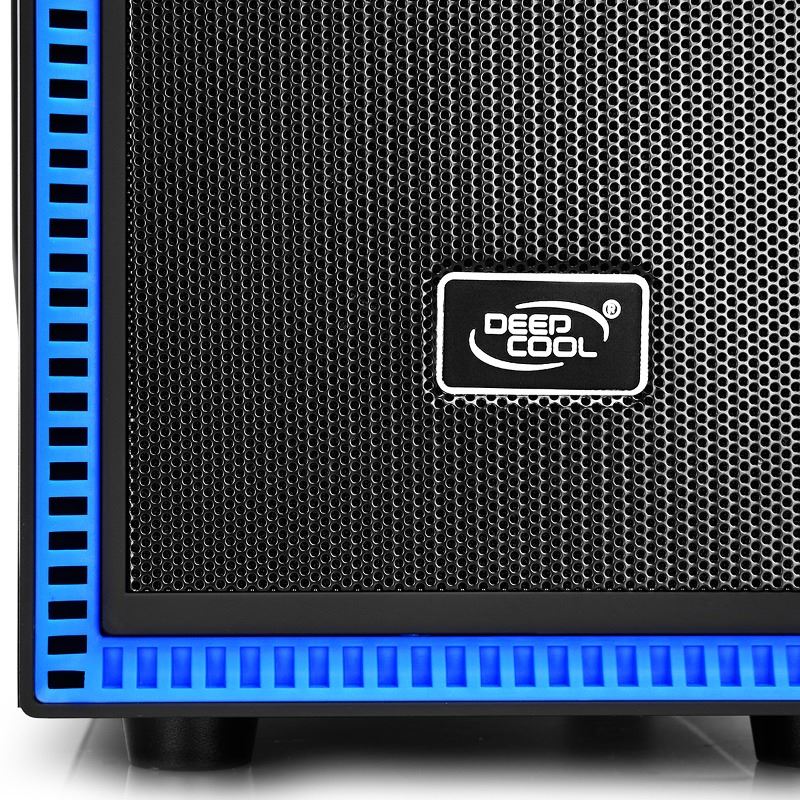 Deepcool Tesseract SW, SPCC Steel ATX Mid Tower Case, fara sursa (tip ATX, montata jos), interior vopsit negru, 2x5.25” (extern), 4x3.5” (intern), 3x2.5” (intern), fata – 1x 120mm Blue LED fan (inclus), spate – 1x 120mm Blue LED fan (inclus), tavan – 2x 120mm fans (optional), lateral – 2x 120mm fans (optional), 1x USB 3.0, 1x USB 2.0, HD Audio, ATX / microATX / Mini ATX / Mini-ITX, sloturi expansiune: x7, inaltime maxima cooler procesor: 168mm, lungime maxima placa video: 310mm, dimensiuni: 472 x 210 x 454mm, greutate: 5.1kg